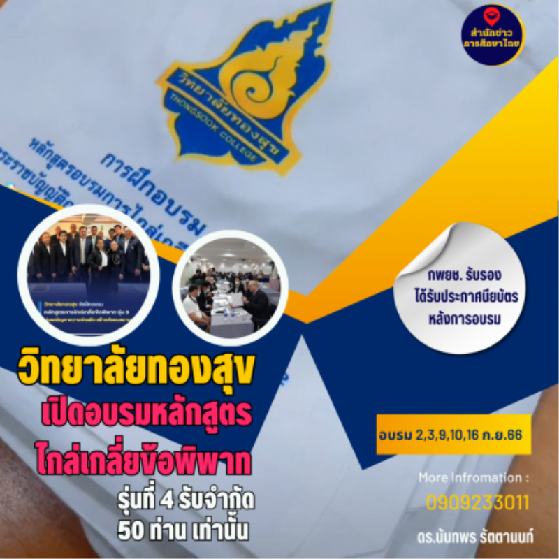 tui sakrapee July 1, 2023 วิทยาลัยทองสุข เปิดอบรมหลักสูตรไกล่เกลี่ยข้อพิพาท รุ่นที่ 4 รับจำกัด 50 ท่านเท่านั้น tui sakrapee July 1, 2023 วิทยาลัยทองสุข เปิดอบรมหลักสูตรไกล่เกลี่ยข้อพิพาท รุ่นที่ 4 รับจำนวนจำกัด 50 ท่านเท่านั้น วิทยาลัยทองสุข เปิดรับสมัครบุคคลทั่วไปที่สนใจเข้ารับการอบรมหลักสูตรอบรมการไกล่เกลี่ยข้อพิพาทตามพระราชบัญญัติการไกล่เกลี่ยข้อพิพาท พ.ศ. 2562 (กพยช. รับรอง และได้รับประกาศนียบัตรหลังการอบรม) รับสมัครตั้งแต่วันนี้เป็นต้นไป เริ่มอบรม 2,3,9,10,16 กันยายน 2566 ค่าใช้จ่าย 6,900-. บาท ชำระโดย ชื่อบัญชี วิทยาลัยทองสุข ธนาคารกรุงไทย 0310545706 https://forms.gle/woVgpWovZttY83nK9 **คุณสมบัติผู้เรียน ต้องเป็นผู้ที่มีอายุไม่ต่ำกว่า 30 ปีบริบูรณ์**… Continue Reading