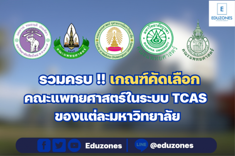 EZ Webmaster July 26, 2023 รวมครบ !! เกณฑ์คัดเลือกคณะแพทยศาสตร์ในระบบ TCAS ของแต่ละมหาวิทยาลัย EZ Webmaster July 26, 2023 เกณฑ์การรับสมัครคณะแพทยศาสตร์ของแต่ละมหาวิทยาลัยในแต่ละภาค สวัสดีค่าา วันนี้พี่ได้รวบรวมเกณฑ์การคัดเลือก ของคณะแพทยศาสตร์ในระบบ TCAS ของมหาวิทยาลัยในแต่ละภาคมาให้ได้อ่านกันก่อนที่น้องๆจะเลือกเข้าสอบในแต่ละรอบกันนะคะว่าแต่ละมหาวิทยาลัยรับในรอบไหนกันบ้าง มาดูกันเลย ภาคเหนือ 1. คณะแพทยศาสตร์ มหาวิทยาลัยเชียงใหม่ รอบที่ 1 Portfoli คณะแพทยศาสตร์ สาขา แพทยศาสตร์ หลักสูตร ไทย รูปแบบของหลักสูตร ปกติ โครงการการรับนักกีฬาที่มีความสามารถดีเด่นระดับนานาชาติ/ระดับชาติ และนักกีฬาตามยุทธศาสตร์ ค่าธรรมเนียมการศึกษา 20,000 คณะแพทยศาสตร์ สาขา แพทยศาสตร์ หลักสูตร ไทย รูปแบบของหลักสูตร ปกติ… Continue Reading