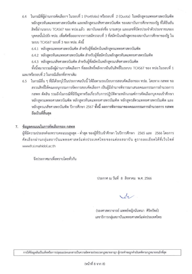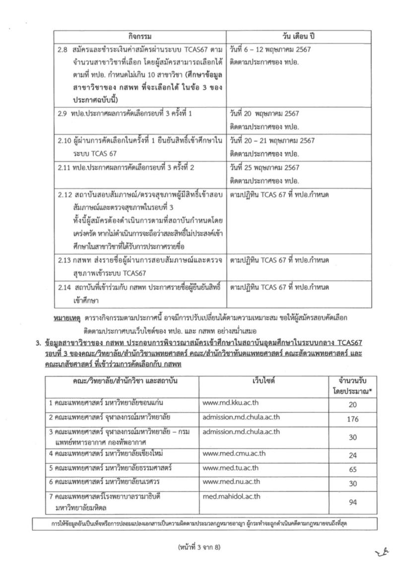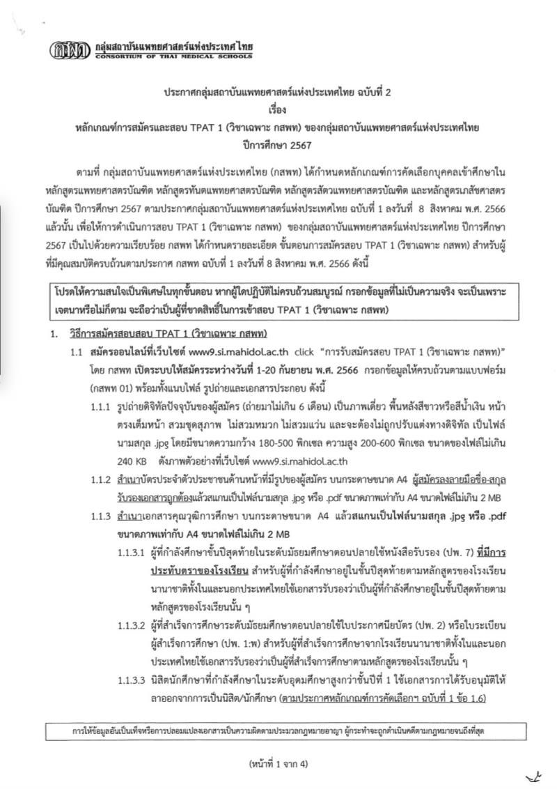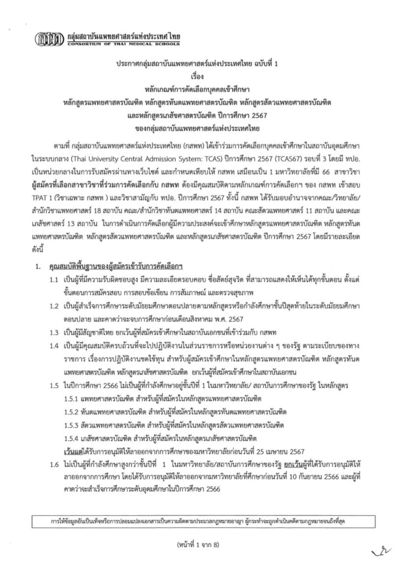 EZ Webmaster August 8, 2023 EZ Webmaster August 8, 2023 ประกาศ กสพท 2567 (สมัครสอบ, กำหนดการคัดเลือก, จำนวนที่เปิดรับ) น้อง ๆ ที่สนใจสมัครสอบวิชาของกลุ่มสถาบันเเพทยศาสตร์ ได้เเก่ หลักสูตรเเพทยศาสตรบัณฑิต หลักสูตรทันตเเพทยศาสตรบัณฑิต หลักสูตรสัตวเเพทยศาสตรบัณฑิต เเละหลักสูตรเภสัชศาสตรบัณฑิต ตอนนี้กลุ่มสถาบันเเพทยศาสตร์เเห่งประเทศไทย (กสพท) ประกาศรับสมัครสอบวิชาเฉพาะเเพทย์ ประจำปีการศึกษา 2567 อย่างเป็นทางการเเล้วนะ • เปิดรับสมัครสอบวิชาเฉพาะเเพทย์ วันที่ 1-20 กันยายน 2566 • วันสอบ วันเสาร์ที่ 16 ธันวาคม 2566 • วันประกาศคะเเนนสอบวิชาเฉพาะเเพทย์ ประมาณวันที่ 5 กุมภาพันธ์ 2567 • หลังจากวันที่ชำระค่าสมัครเเล้ว 7 วัน หากเข้าไปตรวจสอบเเล้วพบว่าเอกสารไม่สมบูรณ์ให้ทำการเเก้ไข ภายในวันที่ 29 กันยายน พ.ศ. 2566 ก่อนเวลา 16:00 น. หากไม่เเก้ไขให้สมบูรณ์จะไม่มีสิทธิ์เข้าสอบ ประกาศ กสพท ฉบับที่ 1/67 คลิก ประกาศ กสพท ฉบับที่ 2/67 คลิก การเตรียมไฟล์ประกอบการสมัครสอบ TPAT 1 (วิชาเฉพาะ กสพท) ปีการศึกษา 2567