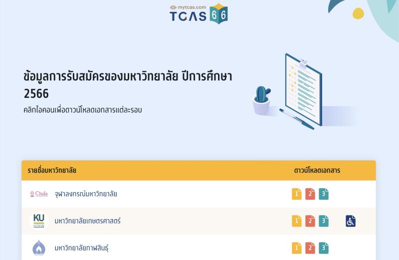 EZ Webmaster August 18, 2023 EZ Webmaster August 18, 2023 รวมเว็บไซต์สำคัญ TCAS วันนี้จะพาน้องๆมารู้จักเว็บไซต์ต่างๆ หรือลิ้งก์เว็บสำคัญต่างๆ ที่น้องๆ67 ควรเก็บไว้ ว่ามีอะไรบ้างในแต่ละเว็บ หลายคนคงคอยติดตามข่าวสาร ความคืบหน้าต่างๆ เกี่ยวกับการรับสมัคร Tcas 67 น้อง ๆ ต้องเริ่มต้นจากการค้นหาตัวเองให้เจอว่าเราอยากเรียนในคณะอะไร จะได้มีเป้าหมาย และง่ายต่อการวางแผนในการทำเป้าหมายให้สำเร็จ จากนั้นหาข้อมูลเกี่ยวกับคณะที่เราสนใจว่าเปิดรับในรอบใดบ้าง และต้องใช้อะไรในการคัดเลือกบ้าง ต่อมาให้วางแผนเรื่องการแบ่งเวลาสำหรับการอ่านหนังสือ, การทำกิจกรรม, เก็บเนื้อหาล่วงหน้า, ทำ Portfolio, เตรียมเกรดและสิ่งสำคัญคือ ต้องติดตามข่าวของระบบ TCAS อยู่เสมอ 1. เว็บหลัก my TCAS คลิก ระบบการคัดเลือกกลางบุคคลเข้าศึกษาในสถาบันอุดมศึกษา จะเปิดระบบลงทะเบียน TCAS67 วันที่ 23 ตุลาคม 2566 ในเว็บ TCAS ปฎิทินการเปิดรับสมัครในแต่ละรอบของ teas67 ปฎิทินการสอบ A-level ปฎิทินการสอบ TGAT / TPAT 2. ลงทะเบียน MY TCAS คลิก น้องๆสามารถลงทะเบียนสอบในระบบ MY TCAS ได้ทั้ง TGAT / TPAT และ A-LEVEL TCAS คือ ระบบการคัดเลือกกลางบุคคลเข้าศึกษาในสถาบันอุดมศึกษา ระบบ TCAS คือ ระบบสารสนเทศการคัดเลือกกลางบุคคลเข้าศึกษาในสถาบันอุดมศึกษา แบบที่1 แฟ้มสะสมผลงาน (Portfolio) แบบที่2 โควตา (Quota) แบบที่3 รับตรงร่วมกัน (Admission 1) แบบที่4 รับกลางร่วมกัน (Admission 2) แบบที่5 รับตรงอิสระ (Direct Admission รอบท่ี 1 แฟ้มสะสมผลงาน (Portfolio) สมคั รที่มหาวิทยาลัย ไม่จํากัดจํานวนสาขาท่ีสมัคร รอบที่ 2 โควตา (Quota) สมคั รท่ีมหาวิทยาลัย ไม่จํากัดจํานวนสาขาท่ีสมัคร รอบที่ 3 รับตรงร่วมกัน (Admission 1) สมัครผ่านระบบ TCAS เลือกสมัครได้สูงสุด 6 อันดับ รอบที่ 4 รับกลางร่วมกัน (Admission 2) สมัครผ่านระบบ TCAS เลือกสมัครได้สูงสุด 4 อันดับ รอบที่ 5 รับตรงอิสระ (Direct Admission) สมัครท่ีมหาวิทยาลัย ไม่จํากัดจํานวนสาขาที่สมัคร จะเปิดระบบลงทะเบียน TCAS67 วันที่23 ตุลาคม 2566 ในเว็บจะมีให้เราเข้าระบบลงทะเบียนด้วย เลขประจำตัวประชาชน 13 หลัก หากไม่มี ให้ใช้ G Number หรือ Passport Number 3. ค้นหาสนามสอบ คลิก ในเว็บจะมีให้เราค้นหาชื่อสนามสอบที่เราต้องการ วิชาสอบทั้งหมด ห้องสอบ จังหวัด และเขต/อำเภอ ที่เราต้องการจะค้นหา น้องๆไม่ต้องไปหาข้อมูลให้เยอะแยะ แค่เข้ามาในเว็บสามารถค้นหาชื่อสนามสอบได้เลย 4. ค้นหาข้อมูลการสมัครมหาวิทยาลัย คลิก ในเว็บจะมีให้เราได้ค้นหาข้อมูลการรับสมัครของมหาวิทยาลัย สามารถตรวจดูรายชื่อมหาวิทยาลัยทั้งหมดได้เลย ในเว็บจะมีข้อมูลเกี่ยวกับการรับสมัครของมหาวิทยาลัยต่างๆของปีการศึกษา2566 หน้าเว็บเมื่อน้องๆเข้ามาจะมีข้อมูลของมหาวิทยาลัยต่างๆ สามารถเข้าดูได้ตามมหาวิทยาลัยที่