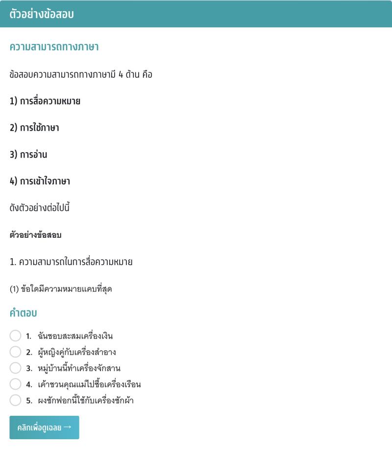 EZ Webmaster August 25, 2023 EZ Webmaster August 25, 2023 โครงสร้างข้อสอบและตัวอย่างข้อสอบ TGAT / TPAT/ A-Level TCAS67 สวัสดีค่ะ วันนี้พี่มีโครงสร้างข้อสอบและตัวอย่างข้อสอบ TGAT / TPAT/ A-Level มาให้น้องๆได้ลองทํากันดูนะคะ สามารถกดลิ้งก์เพื่อดูข้อสอบเพิ่มเติมได้เลยนะคะ โครงสร้างข้อสอบและตัวอย่างข้อสอบ ทักษะการพูด (Speaking Skill) (50 คะแนน) 1) การถาม–ตอบ (Question-Response) จำนวนข้อคำถาม (10 ข้อ) ระดับข้อสอบ (ง่าย 2 ข้อ / กลาง 6 ข้อ / ยาก 2 ข้อ) 2) เติมบทสนทนาแบบสั้น (Short conversations) จํานวน 3 บทสนทนา จำนวนข้อคำถาม (3 – 4 ข้อ/บทสนทนา รวม 10 ข้อ) ระดับข้อสอบ (ง่าย 2 ข้อ / กลาง 6 ข้อ / ยาก 2 ข้อ) 3) เติมบทสนทนาแบบยาว (Long conversations) จํานวน 2 บทสนทนา จำนวนข้อคำถาม (5 ข้อ/บทสนทนา รวม 10 ข้อ) ระดับข้อสอบ (ง่าย 2 ข้อ / กลาง 6 ข้อ / ยาก 2 ข้อ) จํานวน: 30 ข้อ ทักษะการอ่าน (Reading Skill) (50 คะแนน) 1) เติมข้อความในเนื้อเรื่องให้สมบูรณ์ (Text completion) จํานวน 2 บทความ จำนวนข้อคำถาม (7-8 ข้อ/บทความ รวม 15 ข้อ) ระดับข้อสอบ (ง่าย 3 ข้อ / กลาง 9 ข้อ / ยาก 3 ข้อ) 2) อ่านเพื่อจับใจความ (Reading comprehension) จํานวน 3 บทความ หมายเหตุ : บทความทั่วไปที่ใช้ในการสื่อสาร มีจำนวนคำประมาณ 100– 200 คำ จำนวนข้อคำถาม (5 ข้อ/บทความ รวม 15 ข้อ) ระดับข้อสอบ (ง่าย 3 ข้อ / กลาง 9 ข้อ / ยาก 3 ข้อ) จํานวน: 30 ข้อ ระดับความยากง่ายของข้อสอบทั้งฉบับ ระดับง่าย 20% (12 ข้อ) ระดับปานกลาง 60% (36 ข้อ) ระดับยาก 20% (12 ข้อ) ประเภทข้อสอบ ปรนัย (4 ตัวเลือก) ระยะเวลาที่ใช้สอบ 60 นาที ตัวอย่างข้อสอบ คลิก TGAT2 92 การคิดอย่างมีเหตุผล สมรรถนะการคิดอย่างมีเหตุผล (Critical & Logical Thinking) 1) ความสามารถทางภาษา 2) ความสามารถทางตัวเลข 3) ความสามารถทางมิติสัมพันธ์ 4) ความสามารถทางเหตุผล จำนวน: 80 ข้อ ประเภทข้อสอบ ปรนัย (5 ตัวเลือก) ระยะเวลาที่ใช้สอบ 60 นาที ตัวอย่างข้อสอบ คลิก TGAT3 93 สมรรถนะการทำงาน 1) การสร้างคุณค่าและนวัตกรรม 1.1 การคิดเชิงวิเคราะห์ (Analytical thinking) ความเข้าใจในการกำหนดวิธีการรวบรวมประเด็น เหตุการณ์ที่เกิดขึ้น รวมทั้งมีหลักการในการสรุปผลการวิเคราะห์และแยกแยะข้อมูลที่ได้รับออกเป็นปัจจัยย่อย ๆ เช่น สาเหตุ ผลลัพธ์ ผลกระทบ ข้อเสนอแนะ และผู้ที่เกี่ยวข้อง เป็นต้น 1.2 การแก้ไขปัญหาอย่างมืออาชีพ (Professional problem solving) ความสามารถในการวิเคราะห์ปัญหาหรือเล็งปัญหา พร้อมทั้งลงมือจัดการกับปัญหานั้น ๆ อย่างมี ข้อมูล มีหลักการ และสามารถนำความเชี่ยวชาญ หรือแนวคิดในสายวิชาชีพมาประยุกต์ใช้ในการ แก้ไขปัญหาได้อย่างมีประสิทธิภาพ 1.3 ความคิดเชิงนวัตกรรม (Innovative thinking) การนำเสนอความคิดสร้างสรรค์ทางเลือก สินค้าและบริการรูปแบบใหม่ พร้อมทั้งการปรับเปลี่ยน กลยุทธ์ นโยบาย และรูปแบบการดำเนินงานให้เหมาะสมกับสภาพแวดล้อม รวมถึงการพูดจูงใจผู้อื่น นำเสนอความคิดและรูปแบบของสินค้า
