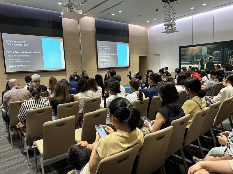 EZ Webmaster September 19, 2023 EZ Webmaster September 19, 2023 การศึกษานิวซีแลนด์ เปิดกว้างให้เด็กค้นพบศักยภาพ ตอบโจทย์ความต้องการของเด็กยุคโลกเปลี่ยนแปลง ได้รับความสนใจอย่างล้นหลามสำหรับงาน “การศึกษานิวซีแลนด์ 2023” (New Zealand Education Fair 2023) งานใหญ่ด้านการศึกษาที่หน่วยงานการศึกษานิวซีแลนด์ (Education New Zealand; ENZ) สถานทูตนิวซีแลนด์ ประจำประเทศไทย ร่วมกับกว่า 50 สถาบันการศึกษาชั้นนำของนิวซีแลนด์ ได้ร่วมกันจัดขึ้น มีน้องๆ นักเรียน นักศึกษา ตลอดจนพ่อแม่ผู้ปกครองและผู้สนใจเข้าร่วมงานกันอย่างคึกคักมากกว่า 1,600 คน โดยมี ฯพณฯ นายโจนาธาน คิงส์ เอกอัครราชทูตนิวซีแลนด์ประจำประเทศไทย เป็นประธานเปิดงาน ณ สามย่านมิตรทาวน์ฮอลล์ 2 เมื่อเร็วๆ นี้ ภายในงานได้มีการมอบรางวัลศิษย์เก่านิวซีแลนด์ดีเด่น (Alumni Hall of Fame) ให้แก่ นายปฐมภพ สุวรรณศิริ ประธานเจ้าหน้าที่บริหาร บมจ.ไทยคม, ดร.ฐิติพงศ์ นันทาภิวัฒน์ ประธานเจ้าหน้าที่บริหาร บริษัท โรงพยาบาลธนบุรี บํารุงเมือง จํากัด และนายทัศน์พล วิวิธวรรธ์) ดารานักแสดงดาวรุ่งจากช่อง 3 นอกจากนี้ ยังมอบรางวัล Friend of New Zealand ให้กับ คุณโชคและคุณสู่ขวัญ บูลกุล โดยมี นางสาวช่อทิพย์ ประมูลผล ผู้อำนวยการประจำประเทศไทยและฟิลิปปินส์ และ นางสาวจารุวรรณ พงษ์จารุวัฒน์ ผู้อำนวยการด้านการศึกษา หน่วยงานการศึกษานิวซีแลนด์ สถานทูตนิวซีแลนด์ ประจำประเทศไทย ร่วมแสดงความยินดี ฯพณฯ นายโจนาธาน คิงส์ เอกอัครราชทูตนิวซีแลนด์ประจำประเทศไทย กล่าวระหว่างการเป็นประธานเปิดงานว่า การจัดงาน New Zealand Education Fair 2023 แสดงถึงความมุ่งมั่นในการส่งเสริมความร่วมมือด้านการศึกษาระหว่างประเทศ สร้างเวทีและเปิดเส้นทางสู่อนาคตให้นักเรียนไทยคว้าโอกาสทางการศึกษาที่หลากหลายของนิวซีแลนด์ โดยในปี พ.ศ. 2566 มีนักเรียนไทยไปเรียนที่นิวซีแลนด์เพิ่มสูงขึ้นอย่างต่อเนื่องทั้งในสถาบันภาษาอังกฤษ โรงเรียน และระดับมหาวิทยาลัย ซึ่งหัวใจสำคัญของการศึกษาในนิวซีแลนด์ คือการพยายามที่จะพัฒนาบุคคลให้มีความรอบรู้ ไม่เพียงแต่ให้มีความรู้ทางวิชาการเท่านั้น แต่ยังพยายามพัฒนาให้มีทักษะและค่านิยมที่ช่วยให้พวกเขา สามารถปรับตัวและประสบความสำเร็จในโลกที่เปลี่ยนแปลงอยู่ตลอดเวลา มุ่งเน้นถึงการเสริมศักยภาพของผู้เรียนให้ตระหนักถึงแรงบันดาลใจของตนเอง เพื่อนำไปสู่เป้าหมายความสำเร็จในอนาคต เป็นระบบการศึกษาที่ออกแบบมาเพื่อจุดประกายความคิดสร้างสรรค์ การคิดวิเคราะห์อย่างมีวิจารณญาณ และมีความมุ่งมั่นในการเรียนรู้ตลอดชีวิต “Why stay in New Zealand; ทำไมถึงต้องไปเรียนนิวซีแลนด์” ภายในงานยังมีการเสวนาหัวข้อ “Why stay in New Zealand; ทำไมถึงต้องไ