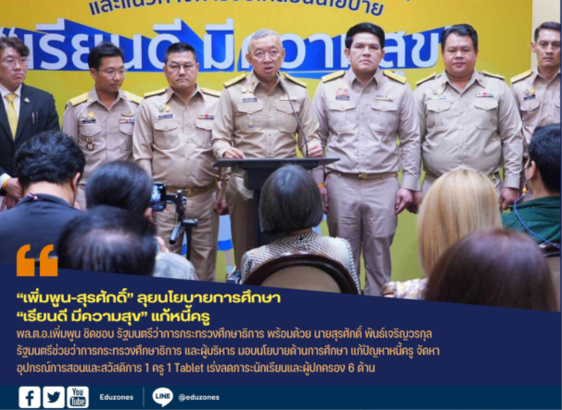 tui sakrapee September 14, 2023 “เพิ่มพูน-สุรศักดิ์” ลุยนโยบายการศึกษา “เรียนดี มีความสุข” แก้หนี้ครู มีรายได้ระหว่างเรียน จบแล้วมีงานทำ tui sakrapee September 14, 2023 พล.ต.อ.เพิ่มพูน ชิดชอบ รัฐมนตรีว่าการกระทรวงศึกษาธิการ พร้อมด้วย นายสุรศักดิ์ พันธ์เจริญวรกุล รัฐมนตรีช่วยว่าการกระทรวงศึกษาธิการ (รมช.ศธ.) พร้อมด้วยผู้บริหาร มอบนโยบายด้านการศึกษา แก้ปัญหาหนี้ครู จัดหาอุปกรณ์การสอนและสวัสดิการ 1 ครู 1 Tablet และเร่งลดภาระนักเรียน และผู้ปกครอง 6 ด้าน เรียนได้ทุกที่ ทุกเวลา, 1 อำเภอ 1 โรงเรียนคุณภาพ, ระบบแนะแนวการเรียน และเป้าหมายชีวิต, การจัดทำระบบวัดผลรับรองมาตรฐานวิชาชีพ, การจัดทำระบบวัดผลเทียบระดับการศึกษา, มีรายได้ระหว่างเรียน จบแล้วมีงานทำ… Continue Reading