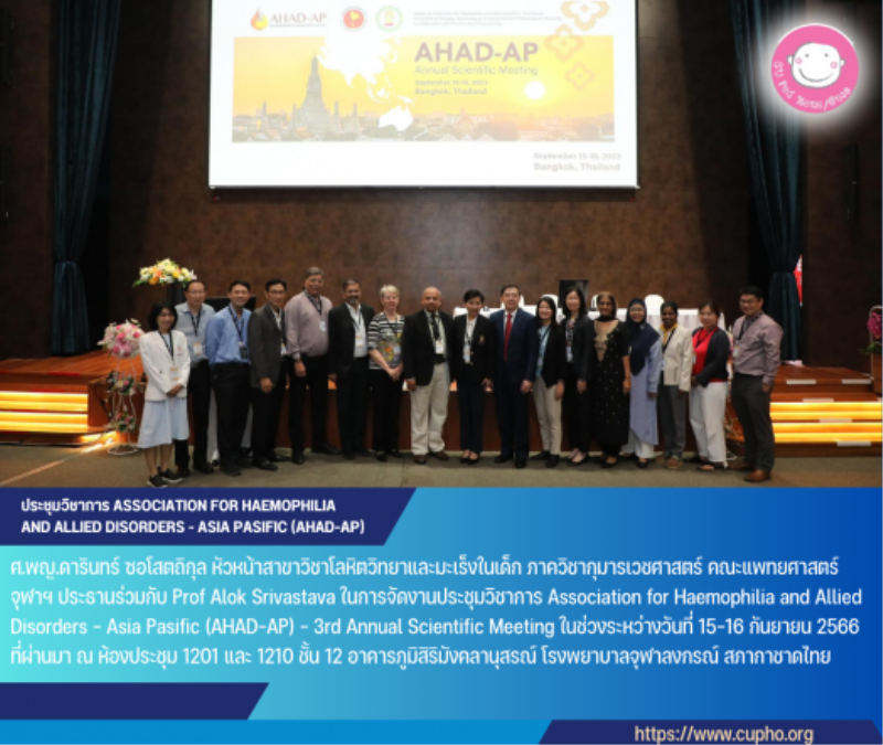tui sakrapee September 25, 2023 รพ.จุฬาฯ รวมสุดยอดคุณหมอ 320 ท่านจากทั่วโลก ร่วมประชุมวิชาการ Association for Haemophilia and Allied Disorders – Asia Pasific (AHAD-AP) tui sakrapee September 25, 2023 ศ.พญ.ดารินทร์ ซอโสตถิกุล หัวหน้าสาขาวิชาโลหิตวิทยาและมะเร็งในเด็ก ภาควิชากุมารเวชศาสตร์ คณะแพทยศาสตร์ จุฬาฯ ประธานร่วมกับ Prof Alok Srivastava ในการจัดงานประชุมวิชาการ Association for Haemophilia and Allied Disorders – Asia Pasific (AHAD-AP) – 3rd Annual Scientific Meeting ในช่วงระหว่างวันที่ 15-16 กันยายน 2566 ที่ผ่านมา ณ… Continue Reading