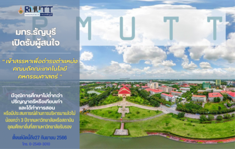 tui sakrapee September 25, 2023 มทร.ธัญบุรีเปิดรับผู้สนใจเข้าสรรหาเพื่อดำรงตำแหน่งคณบดีคณะเทคโนโลยีคหกรรมศาสตร์ tui sakrapee September 25, 2023 คณะกรรมการสรรหาคณบดีคณะเทคโนโลยีคหกรรมศาสตร์ มหาวิทยาลัยเทคโนโลยีราชมงคลธัญบุรี กำลังเปิดรับผู้สนใจเข้าสรรหาเพื่อดำรงตำแหน่งคณบดีคณะเทคโนโลยีคหกรรมศาสตร์ คุณสมบัติต้องมีวุฒิการศึกษาไม่ต่ำกว่าปริญญาตรีหรือเทียบเท่า และได้ทำการสอนหรือมีประสบการณ์ด้านการบริหารมาแล้วไม่น้อยกว่า 3 ปีจากมหาวิทยาลัยหรือสถาบันอุดมศึกษาอื่นที่สภามหาวิทยาลัยรับรอง และไม่มีลักษณะต้องห้ามตามกฎหมายว่าด้วยระเบียบข้าราชการพลเรือนในสถาบันอุดมศึกษา รวมทั้งมีคุณสมบัติอื่นตามที่กำหนดในข้อบังคับ ของมหาวิทยาลัย ผู้สนใจสามารถขอรับแบบใบสมัครและยื่นเอกสารหลักฐานด้วยตนเอง ตามที่คณะกรรมการสรรหากำหนดได้ที่สำนักงานอธิการบดี มหาวิทยาลัยเทคโนโลยีราชมงคลธัญบุรี อ.ธัญบุรี จ.ปทุมธานี ตั้งแต่บัดนี้ถึงวันที่ 27 กันยายน 2566 เวลา 08.30-16.30 น. หรือดาวน์โหลดที่เว็บไซต์ https://www.rmutt.ac.th/2023/09/15/dean-het66/ สอบถาม โทร. 0-2549-3010 Continue Reading