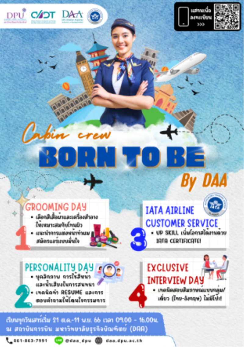 EZ Webmaster September 22, 2023 ครั้งแรกในไทย CADT DPU เปิด 2 หลักสูตรใหม่ สร้างแรงบันดาลใจให้เด็กรั้วกองบิน พร้อมสานฝันดันสู่อาชีพพนักงานต้อนรับบนเครื่องบิน ด้วยหลักสูตรติวสอบแอร์-สจ๊วตเชิงลึก EZ Webmaster September 22, 2023 ผู้ช่วยศาสตราจารย์ น.ต.ดร.วัฒนา มานนท์ คณบดีวิทยาลัยการพัฒนาและฝึกอบรมด้านการบิน (CADT: College of Aviation Development and Training ) มหาวิทยาลัยธุรกิจบัณฑิตย์ (DPU) เปิดเผยว่า ขณะนี้อุตสาหกรรมการท่องเที่ยวและอุตสาหกรรมการบินฟื้นตัวอย่างรวดเร็ว ส่งผลให้บุคลากรทั้ง 2 อุตสาหกรรมขาดแคลนจำนวนมาก จากผลสำรวจของ IATA พบว่าปัจจุบันสายการบินทั่วโลกมีจำนวนผู้โดยสารกลับมาใช้บริการ จำนวน 4,500 ล้านคนต่อปี ซึ่งใกล้เคียงกับช่วงก่อนเกิดโควิด –19 ในปี 2562 ที่มีจำนวน 4,540 ล้านคน ส่วนรายได้ของภาคการบินฟื้นกลับมาประมาณ 8 แสนล้านดอลลาร์สหรัฐ สำหรับประเทศไทยมีเที่ยวบินเพิ่มขึ้นเช่นเดียวกัน ได้แก่ สนามบินสุวรรณภูมิมีทั้งหมด 826 เที่ยวบินต่อวัน ขณะที่สนามบินดอนเมืองมี 481 เที่ยวบินต่อวัน ซึ่งตัวเลขที่เพิ่มขึ้นดังกล่าวสอดรับกับนโยบายของรัฐบาลที่ตั้งเป้าให้คนเดินทางท่องเที่ยวไทยจำนวน 30 ล้านคนต่อปี ขณะนี้ผ่านไป 8 เดือนมีผู้โดยสารเดินทางมาไทยแล้วจำนวน 17 ล้านคน ผู้ช่วยศาสตราจารย์ น.ต.ดร.วัฒนา กล่าวว่า จากสถิติดังกล่าว CADT DPU ในฐานะสถาบันการศึกษา ที่มุ่งมั่น… Continue Reading