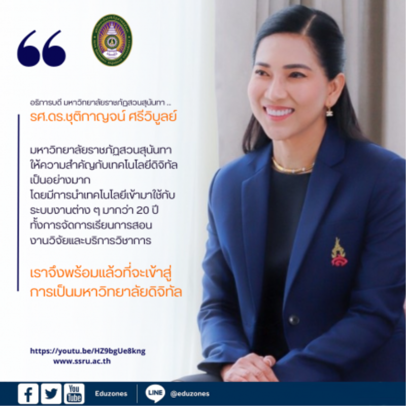 tui sakrapee October 27, 2023 “สวนสุนันทา” ก้าวสู่ “มหาวิทยาลัยดิจิทัล” tui sakrapee October 27, 2023 การเตรียมความพร้อมสู่ความเป็นมหาวิทยาลัยดิจิทัล มหาวิทยาลัยราชภัฏสวนสุนันทา ได้ความสำคัญกับเทคโนโลยีดิจิทัลเป็นอย่างมาก โดยมีการนำเทคโนโลยีเข้ามาใช้กับระบบงานต่าง ๆ มากว่า 20 ปี ทั้งการจัดการเรียนการสอน งานวิจัยและบริการวิชาการ รวมถึงระบบบริหารจัดการองค์กรต่าง ๆ เช่น ระบบ e-office ทำให้ระบบงานสารบรรณของมหาวิทยาลัยเป็นแบบ Paperless มาตั้งแต่ พ.ศ. 2553 ระบบสารสนเทศเพื่อการบริหารจัดการองค์กรซึ่งใช้งานมาต่อเนื่องกว่า 20 ปี รวมถึงการให้ความสำคัญกับความปลอดภัยทางเทคโนโลยีในระดับมาตรฐาน ISO 27001 ดังนั้น มหาวิทยาลัยราชภัฏสวนสุนันทาพร้อมแล้วที่จะก้าวเข้าสู่ความเป็น “มหาวิทยาลัยดิจิทัล” กระบวนการและแนวความคิดในการเปลี่ยนแปลงสู่ความเป็นมหาวิทยาลัยดิจิทัล การพัฒนาทักษะในด้านวิชาชีพ การผลิตบัณทิตเพื่อรองรับความต้องการของสังคมและประเทศ… Continue Reading