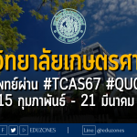 มทร.ธัญบุรี เปิดจำนวนรับนศ.ใหม่ ปี 69 เกือบ 7 พันคน รอการอนุมัติหลักสูตรใหม่ 6 หลักสูตร หากผ่านฉลุยรับเพิ่มอีก 5% EZ WebmasterDecember 19, 2025 มทร.ธัญบุรี เปิดจำนวนรับนศ.ใหม่ ปี 69 เกือบ 7 พันคน รอการอนุมัติหลักสูตรใหม่ 6 หลักสูตร หากผ่านฉลุยรับเพิ่มอีก 5% รศ.ดร.สมหมาย ผิวสอาด อธิการบดี มหาวิทยาลัยเทคโนโลยีราชมงคล (มทร.) ธัญบุรี… มหาวิทยาลัยอุบลราชธานี เปิดรับสมัคร หลักสูตรแพทยศาสตรบัณฑิต ปีการศึกษา 2569 โครงการแพทย์เพื่อชุมชน และแพทย์ลดความเหลื่อมล้ำ EZ WebmasterDecember 19, 2025 มหาวิทยาลัยอุบลราชธานี เปิดรับสมัคร หลักสูตรแพทยศาสตรบัณฑิต ปีการศึกษา 2569 โครงการแพทย์เพื่อชุมชน และแพทย์ลดความเหลื่อมล้ำ คณะแพทยศาสตร์ มหาวิทยาลัยอุบลราชธานี (UBU) ประกาศเปิดรับสมัครนักศึกษาใหม่ หลักสูตรแพทยศาสตรบัณฑิต (พ.บ.) ประจำปีการศึกษา 2569 ภายใต้โครงการผลิตแพทย์เพื่อชุมชน และแพทย์ลดความเหลื่อมล้ำ เพื่อพัฒนาบุคลากรทางการแพทย์ที่มีความเข้าใจบริบทพื้นที่…