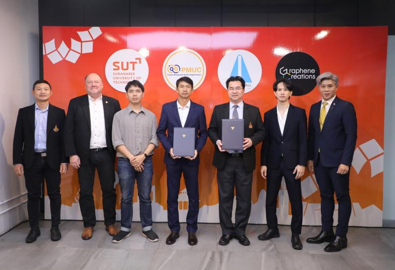 EZ Webmaster November 28, 2023 EZ Webmaster November 28, 2023 มสท. เปิดตัว Second Skin สเปรย์ซัพพอร์ตข้อต่อ พร้อมจับมือกราฟีน ครีเอชั่นส์ และ สตีฟ เวล คอร์ปอเรท ร่วมพัฒนาผลิตภัณฑ์ ให้ใช้สิทธิเพื่อออกสู่ตลาดในอนาคต โครงการแพลตฟอร์มบ่มเพาะและเร่งสร้างเติบโตนวัตกรรมเชิงลึก ม.เทคโนโลยีสุรนารี (SUT Horizon) เปิดตัว Second Skin นวัตกรรมวัสดุศาสตร์ที่คิดค้นมาจากนักศึกษาที่รักในการเล่นฟุตบอลร่วมกับการวิจัยพัฒนาวัสดุกราฟีน ได้ออกแบบผลิตภัณฑ์เป็นสเปรย์เพื่อฉีดพ่นข้อเท้า (Non-woven fabric) เส้นใยจะห่อหุ้มรอบ ๆ ข้อและแห้งในทันที ก่อนสวมถุงเท้าและรองเท้าเล่นกีฬาอย่างเช่น นักกีฬาฟุตบอล บาสเก็ตบอล วิ่ง เทนนิส วอลเลย์บอล ที่ต้องล็อคข้อเท้าด้วยเทปพันอยู่เสมอ ให้สามารถใช้งานสะดวกมากขึ้น เพื่อลดความเสี่ยงการบาดเจ็บที่อาจเกิดขึ้นระหว่างกิจกรรม มีส่วนผสมวัสดุที่มีคุณสมบัติให้ความแข็งแรงอย่างกราฟีน เป็นองค์ประกอบสำคัญ พร้อมกับได้ร่วมเซ็น MOU กับบริษัท กราฟีน ครีเอชั่นส์ จำกัด และบริษัท สตีฟ เวล คอร์ปอเรท จำกัด ร่วมพัฒนาผลิตภัณฑ์ ให้ใช้สิทธิ เพื่อออกสู่ตลาดโดยมี รองศาสตราจารย์ ดร.อนันต์ ทองระอา อธิการบดีมหาวิทยาลัยเทคโนโลยีสุรนารี นายเท็ด โปษะกฤษณะ ถิระพัฒน์ กรรมการบริหาร บริษัท กราฟีน ครีเอชั่นส์ จำกัด นายวิตะ บุษดี กรรมการบริหาร บริษัท สตีฟ เวลคอร์ปอเรท จำกัด ร่วมลงนามบันทึกข้อตกลงความร่วมมือฯ รองศาสตราจารย์ ดร.อนันต์ ทองระอา อธิการบดีมหาวิทยาลัยเทคโนโลยีสุรนารี เปิดเผยว่า โครงการแพลตฟอร์มบ่มเพาะและเร่งสร้างเติบโตนวัตกรรมเชิงลึก มหาวิทยาลัยเทคโนโลยีสุรนารี (SUT Horizon) เปิดตัวผลิตภัณฑ์สเปรย์สำหรับฉีดพ่นให้ห่อหุ้มบริเวณข้อเท้าเพื่อลดอาการบาดเจ็บของนักกีฬา ด้วยนวัตกรรมด้านวัสดุศาสตร์ที่คิดค้นจากห้องปฏิบัติการมหาวิทยาลัย (Second Skin) ใช้ก่อนทำการฝึกซ้อมหรือแข่งขันกีฬา เพื่อช่วยพยุงข้อเท้าให้มีความมั่นคงในขณะทำกิจกรรมกีฬาและออกกำลังกาย การที่มหาวิทยาลัยเทคโนโลยีสุรนารี ได้ร่วมพิธีลงนามสัญญาอนุญาตให้ใช้สิทธิ และพิธีลงนามในสัญญาการจัดซื้อ ร่วมกับ บริษัท กราฟีน ครีเอชั่นส์ จำกัด และ บริษัท สตีฟ เวล คอร์ปอเรท จำกัด ถือเป็นความสำเร็จของผลผลิตนวัตกรรมจากงานวิจัยเทคโนโลยีเชิงลึกที่สามารถออกสู่ตลาด มีบริษัทคู่ค้าใหญ่ อย่าง บริษัท สตีฟ เวล คอร์ปอเรท จำกัด ที่เป็นทั้งผู้ขออนุญาตใช้สิทธิ และได้รับการสนับสนุนงบประมาณจาก หน่วยบริหารและจัดการทุนด้านการเพิ่มความสามารถในการแข่งขันของประเทศ (บพข.) จึงนับเป็นโครงการต้นแบบที่สามารถแสดงให้เห็นถึงตัวอย่างงานนวัตกรรรม และระบบนิเ