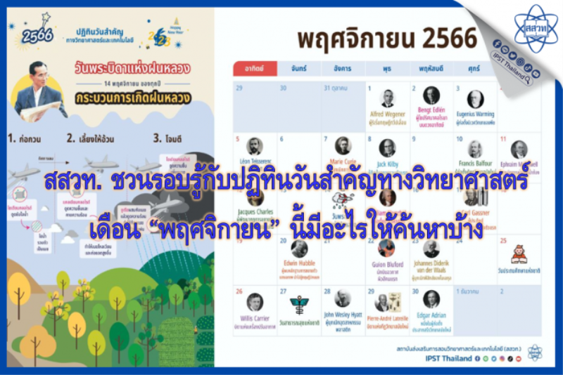 EZ Webmaster November 2, 2023 สสวท. ชวนรอบรู้กับปฏิทินวันสำคัญทางวิทยาศาสตร์ เดือน “พฤศจิกายน” นี้มีอะไรให้ค้นหาบ้าง EZ Webmaster November 2, 2023 สถาบันส่งเสริมการสอนวิทยาศาสตร์และเทคโนโลยี (สสวท.) ชวนเยาวชนพบกับสื่อเสริมเพิ่มความรอบรู้ ปฏิทินวันสำคัญทางวิทยาศาสตร์และเทคโนโลยี เดือนพฤศจิกายน เดือนนี้รู้หรือไม่ว่ามีวันเกิดของ มารี คูรี นักวิทยาศาสตร์ผู้บุกเบิกการวิจัยด้านกัมมันตภาพรังสีซึ่งได้รับรางวัลโนเบลถึง 2 ครั้ง แล้วยังมี เอ็ดวิน พาวเวลล์ ฮับเบิล หลายคนอาจคุ้นเคยกับชื่อนี้ดีจาก “กล้องโทรทรรศน์ฮับเบิล”ซึ่งเป็นชื่อที่ได้รับการตั้งขึ้นเพื่อเป็นเกียรติกับนักดาราศาสตร์นามก้องโลกในศตวรรษที่ 20 คนนี้ หรือวันเกิดของ คาร์ล กัสเนอร์ นักวิทยาศาสตร์ชาวเยอรมันผู้ประดิษฐ์เซลล์แบตเตอรี่แห้ง ตัวแรก รู้จักกับ วิลลิส แคร์เรียร์ ผู้คิดค้นแอร์เครื่องแรกของโลก ในเดือนนี้ยังมีวันสำคัญ อาทิ วันพระบิดาแห่งฝนหลวงวันประถมศึกษาแห่งชาติ วันสาธารณสุขแห่งชาติ ตลอดจนวันเกิดของนักวิทยาศาสตร์ที่ฝากผลงานชวนจดจำให้กับ โลกอีกหลาย ๆ คน พบกับสื่อเสริมเพิ่มความรอบรู้ ปฏิทินวันสำคัญทางวิทยาศาสตร์และเทคโนโลยี ปี 2566 ได้ที่ เว็บไซต์ สสวท. https://www.ipst.ac.th หรือ ค้นหาเรื่องราวของมารี คูรี ได้ที่ คลังความรู้ SciMath สสวท. https://www.scimath.org/article?filter=Marie Continue Reading