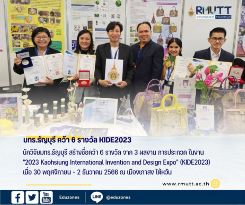 tui sakrapee December 7, 2023 นักวิจัยมทร.ธัญบุรี คว้า 6 รางวัล จาก 3 ผลงาน “2023 Kaohsiung International Invention and Design EXPO” ณ เมืองเกาสง ไต้หวัน tui sakrapee December 7, 2023 มทร.ธัญบุรี คว้า 6 รางวัล จาก 3 ผลงาน “2023 Kaohsiung International Invention and Design EXPO” ณ เมืองเกาสง ไต้หวัน นักประดิษฐ์นักวิจัยมหาวิทยาลัยเทคโนโลยีราชมงคลธัญบุรี คว้า 6 รางวัล จาก 3 ผลงาน การประกวด ในงาน “2023 Kaohsiung International Invention and Design Expo” (KIDE2023) ที่จัดขึ้นระหว่างวันที่30… Continue Reading
