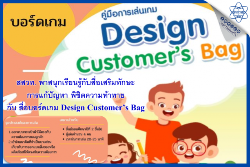 EZ Webmaster December 21, 2023 สสวท. พาสนุกเรียนรู้กับสื่อเสริมทักษะการแก้ปัญหา พิชิตความท้าทาย กับ สื่อบอร์ดเกม Design Customer’s Bag EZ Webmaster December 21, 2023 สถาบันส่งเสริมการสอนวิทยาศาสตร์และเทคโนโลยี (สสวท.) ชวนเรียนรู้คู่สร้างสรรค์กับสื่อบอร์ดเกม Design Customer’s Bag สื่อเรียนรู้วิชาออกแบบและเทคโนโลยี ระดับมัธยมศึกษาตอนต้น ส่งเสริมทักษะการแก้ปัญหาโดยจำลองสถานการณ์ให้น้อง ๆ สวมบทนักออกแบบกระเป๋าผ้าให้ตรงกับความต้องการของลูกค้า เช่น หน้าที่ใช้สอย วัสดุ ความสวยงามทั้งรูปทรง สีสัน ลวดลาย และราคา โดนใจลูกค้า สร้างความเข้าใจเรื่องการออกแบบภายใต้เงื่อนไขและทรัพยากรที่มีอยู่ ซึ่งผู้เล่นต้องพิจารณาถึงข้อจำกัดหรือเงื่อนไขที่เกี่ยวข้อง ไม่ว่าจะเป็นทุน เวลา ผู้ใช้งานหรือปัจจัยรอบด้าน พิชิตความท้าทายเรียนรู้ได้สนุกสร้างสรรค์ ดาวน์โหลดฟรีที่ คลังสื่อการสอน สสวท. https://myipst.ipst.ac.th/medias/search?keyword=บอร์ดเกม Continue Reading