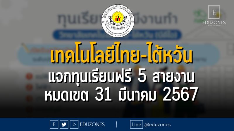 EZ Webmaster January 11, 2024 EZ Webmaster January 11, 2024 วิทยาลัยเทคโนโลยีไทย-ไต้หวัน แจกทุนเรียนฟรี 5 สายงาน : หมดเขต 31 มีนาคม 2567 วิทยาลัยเทคโนโลยีไทย-ไต้หวัน แจกทุนเรียนฟรี 5 สายงาน : หมดเขต 31 มีนาคม 2567 วิทยาลัยเทคโนโลยีไทย-ไต้หวัน แจกทุนเรียนฟรี 5 สายงาน : หมดเขต 31 มีนาคม 2567 . วิทยาลัยเทคโนโลยีไทย-ไต้หวัน (BDI) เปิดรับสมัครนักศึกษาทุนระดับประกาศนียบัตรวิชาชีพชั้นสูง (ปวส.) ปีการศึกษา 2567 ใน 5 สายงาน แม่พิมพ์พลาสติก ไฟฟ้า เทคนิคยานยนต์ไฟฟ้า การบัญชี เทคโนโลยีดิจิทัล . คุณสมบัติ จบ ม.6 / ปวช.3 / กศน. หรือเทียบเท่า อายุ 18 ปีขึ้นไป หากพูดภาษาจีนได้จะได้รับพิจารณาเป็นพิเศษ . สิทธิประโยชน์และเงื่อนไข นักศึกษาจะได้รับความรู้ทางวิชาการ นักศึกษาจะได้รับการฝึกอาชีพที่ดี ตรงกับความต้องการของผู้เรียน นักศึกษาจะได้รับการฝึกปฏิปัติงานจริง กับเครื่องมือ เครื่องจักร และอุปกรณ์เทคโลยีที่ทันสมัย นักศึกษาจะได้รับการพัฒนาให้มีสมรรถนะที่เหมาะสมกับงานในสาขาอาชีพ นักศึกษามีโอกาสไปทัศนศึกษาดูงานที่ประเทศไต้หวัน นักศึกษาจะได้รับการสนับสนุนค่าธรรมนียมการศึกษา ค่าฝืกประสบการณ์วิชาชีพ (ตามค่แรงขั้นต่ำของกรมแรงงาน) ค่าหอพัก และความช่วยเหลืออื่น ๆ ด้านการศึกษาจากสถานประกอบการ นักศึกษาจะต้องทำงานร่วมกับสถานประกอบการที่ให้ทุนการศึกษาเป็นระยะเวลาอย่างน้อย 2 ปี หลังจบการศึกษา นักศึกษามีโอกาสได้รับการศึกษาต่อในระดับปริญญาตรี ทั้งในประเทศไทยและประเทศไต้หวัน . แหล่งทีมา : คลิก .