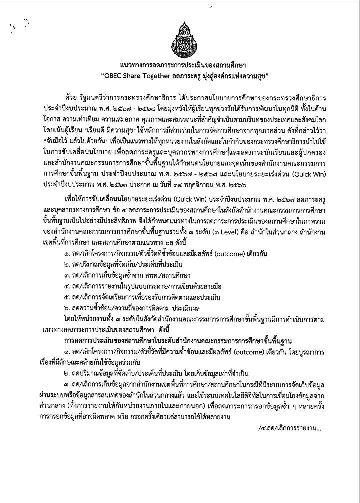 EZ Webmaster January 14, 2024 EZ Webmaster January 14, 2024 แนวทางลดภาระการประเมิน “OBEC Share Together ลดภาระครู มุ่งสู่องค์กรแห่งความสุข” แนวทางลดภาระการประเมิน “OBEC Share Together ลดภาระครู มุ่งสู่องค์กรแห่งความสุข” แนวทางลดภาระการประเมิน “OBEC Share Together ลดภาระครู มุ่งสู่องค์กรแห่งความสุข” .