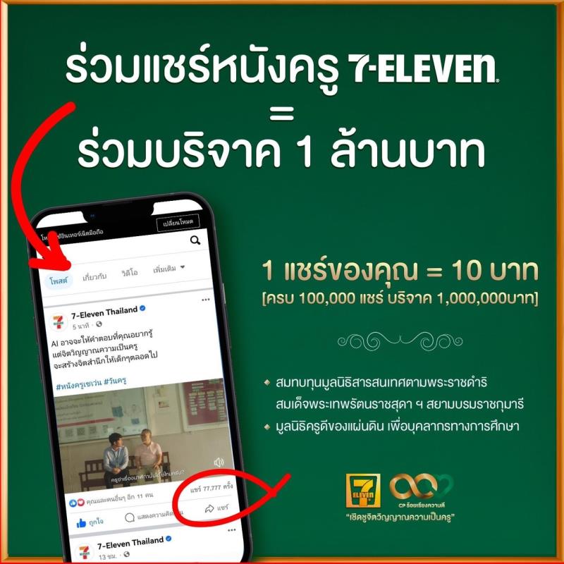 EZ Webmaster January 18, 2024 EZ Webmaster January 18, 2024 ซีพี ออลล์ จัดเสวนาพิเศษ “อนาคตครูไทยในทศวรรษหน้า” พร้อมเปิดตัวคลิป “เชิดชูจิตวิญญาณความเป็นครู” เนื่องในวันครูแห่งชาติ 2567 ซีพี ออลล์ และ เซเว่น อีเลฟเว่น จัดงาน “รำลึกพระคุณครู” พร้อมเปิดตัวภาพยนตร์ “เชิดชูจิตวิญญาณความเป็นครู” เนื่องในวันครูแห่งชาติ ประจำปี 2567 สะท้อนวิถีของครูผู้สร้าง ท่ามกลางความท้าทายในยุค Generative AI พร้อมจัดเสวนาพิเศษหัวข้อ “อนาคตครูไทยในทศวรรษหน้า” จากวิทยากรมากประสบการณ์ในแวดวงการศึกษา หนุนการนำเทคโนโลยีแห่งอนาคตช่วยพัฒนาการสอน พร้อมตอกย้ำจิตวิญญาณความเป็นครูที่เทคโนโลยีแทนที่ไม่ได้ และนิทรรศการ “เชิดชูพระคุณครู” ที่รวบรวมเรื่องราวดีๆ ของครูผู้สร้างที่เคยถูกสร้างเป็นภาพยนตร์ นายก่อศักดิ์ ไชยรัศมีศักดิ์ ประธานกรรมการบริหาร บริษัท ซีพี ออลล์ จำกัด (มหาชน) ผู้บริหารเซเว่น อีเลฟเว่น และเซเว่น เดลิเวอรี่ กล่าวว่า เซเว่น อีเลฟเว่น ตระหนักและให้ความสำคัญกับ “ครู” มาโดยตลอด เพราะ “ครู คือ ผู้สร้าง” อนาคตของชาติ พร้อมเชิญชวนให้คนไทยร่วมรำลึกถึงพระคุณครู ผ่านภาพยนตร์ส่งเสริมสังคมมาตั้งแต่ปี 2551 รวมเป็นระยะเวลากว่า 16 ปี เพื่อร่วมปลูกจิตสำนึกคนไทยให้เห็นความสำคัญและกตัญญูต่อพระคุณครู โดยได้สร้างสรรค์ผลงานคุณภาพมากถึง 14 เรื่อง ในปีนี้ถือเป็นอีกหนึ่งปีสำคัญหลังผ่านวิกฤตโควิด-19 ก้าวเข้าสู่ยุคแห่งการเปลี่ยนผ่านทั้งในมิติการดำเนินชีวิต และเทคโนโลยีที่พัฒนาอย่างไม่หยุดยั้ง เซเว่น อีเลฟเว่น จึงได้จัดงาน “รำลึกพระคุณครู” เพื่อสะท้อนบริบทของหน้าที่ครูในปัจจุบัน ผ่านภาพยนตร์เรื่องใหม่ประจำปี 2567 “เชิดชูจิตวิญญาณความเป็นครู” “ปัจจุบันการศึกษาไทยกำลังขับเคลื่อนเข้าสู่ยุค Generative AI ที่มีการนำเรื่องของ AI (ปัญญาประดิษฐ์) และเทคโนโลยีต่างๆเข้าช่วยในการบริหารจัดการด้านการศึกษาในทุกๆ มิติ จนก่อให้เกิดความกังวลว่า ความสำคัญของครูจะลดน้อยถอยลงไปหรือไม่ ทำให้ในปีนี้ธีมหลักของภาพยนตร์เชิดชูพระคุณครู จึงมุ่งเน้นการสร้างความตระหนักรู้ถึงจิตวิญญาณความเป็นครูที่ AI หรือเทคโนโลยีไม่สามารถทดแทนได้ ภายใต้ชื่อภาพยนตร์ชุด “เชิดชูจิตวิญญาณความเป็นครู” ที่ถ่ายทอดเรื่องราวของครูผู้สร้างในยุคของการเปลี่ยนแปลง ที่ไม่เพียงต้องก้าวให้ทันโลก แต่ต้องมุ่งสร้างคุณธรรมและจริยธรรมให้กับเยาวชนผู้ที่เปรียบเสมือนต้นกล้าให้เติบโตเป็นต้นไม้ใหญ่ที่แข็งแรงและสมบูรณ์ พร้อมนำพาประเทศก้าวข้ามทุกการเปลี่ยนแปลงในอนาคต สะท้อนให้เห็นถึง AI เป็นปัญญาประดิษฐ์ แต่ครูคือผู้ประดิษฐ