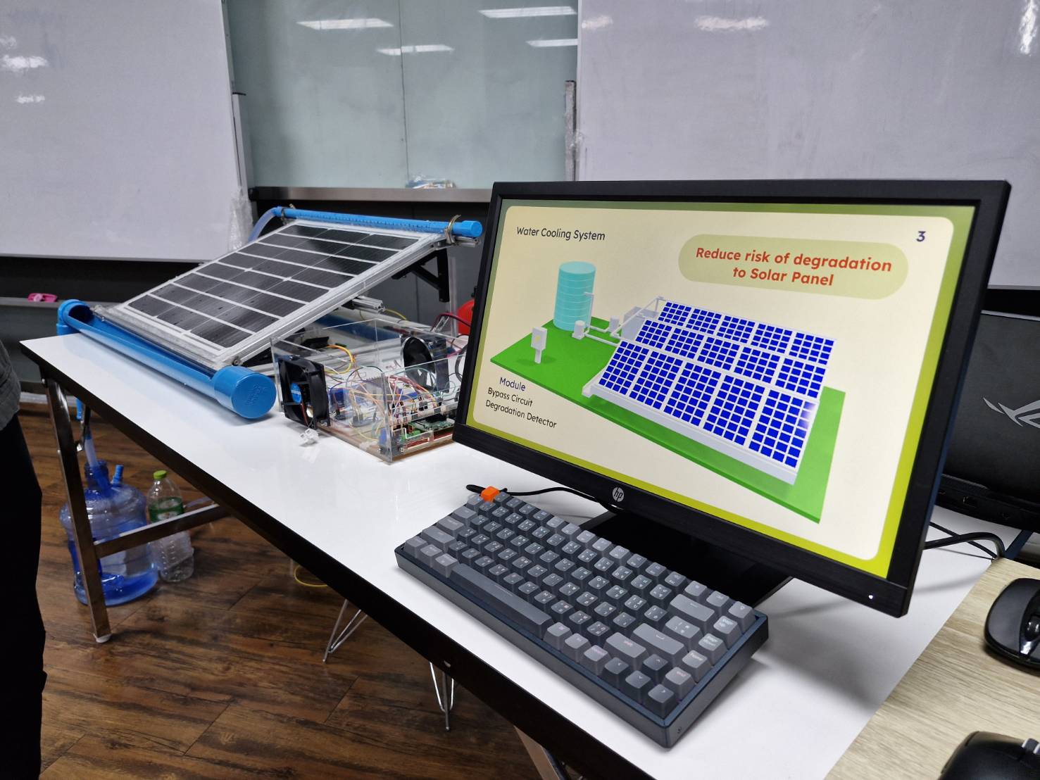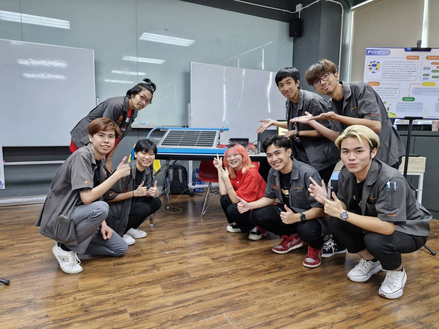 EZ Webmaster January 18, 2024 EZ Webmaster January 18, 2024 “คูลเลอร์วอทิ่ง” นวัตกรรมยืดอายุแผงโซลาร์เซลล์ ผลงานไอเดีย นศ.ฟีโบ้ ชั้นปี 3 แม้จะเป็นที่ยอมรับว่าการติดตั้ง “แผงโซลาร์เซลล์” กับอาคารบ้านเรือนจะเป็นการลงทุนที่ “คุ้มค่า” ในระยะยาวกับเจ้าของอาคาร แต่ด้วยอายุการใช้งานของแผงโซลาร์เซลล์ในเขตร้อนที่กำหนดไว้ที่ 20-25 ปี ทำให้คาดการณ์ว่าประเทศไทยจะต้องรับมือกับ “ขยะแผงโซลาร์เซลล์” ที่จะเกิดขึ้นพร้อมๆ กันในปริมาณมหาศาลในอีก 20-25 ปีข้างหน้าอย่างแน่นอน ดังนั้นหากมีวิธีการที่จะช่วยยืดอายุการใช้งานของแผงโซลาร์เซลล์เหล่านี้ให้นานขึ้น นอกจากจะเป็นประโยชน์กับผู้ใช้งานโดยตรงแล้ว ยังทำให้ปริมาณของแผงโซลาร์เซลล์ที่เลิกใช้งานในแต่ละปี มีจำนวนลดน้อยลง และไม่เป็นขยะพร้อมๆ กันในช่วง 20-25 ปีข้างหน้า นำไปสู่การจัดการกับขยะกลุ่มนี้อย่างมีประสิทธิภาพ เหมาะสม และมีผลเสียกับสิ่งแวดล้อมน้อยที่สุด จึงเป็นที่มาของ “คูลเลอร์วอทิ่ง จงเย็นลงนะเจ้าโซลาร์” เป็นระบบที่ช่วยยืดอายุการใช้งานของโซลาร์เซลล์หรือโซลาร์พาแนล ที่ถูกจัดแสดงภายใต้กิจกรรม FIBO DEMO DAY เมื่อเดือนธันวาคมที่ผ่านมา เป็นผลงานไอเดียของกลุ่มนักศึกษาชั้นปีที่ 3 สถาบันวิทยาการหุ่นยนต์ภาคสนาม (FIBO) มหาวิทยาลัยเทคโนโลยีพระจอมเกล้าธนบุรี (มจธ.) ที่มีสมาชิกด้วยกัน 8 คน ประกอบด้วย ลลิดา เตชะวิโรจน์อุดม, สรชัช ขวัญเกลี้ยง, ปภพ พันธรักษ์, กิตติเชษฐ์ อาริยะธนาศักดิ์, พงศภัค รติปัญญากุล, ธนภัทร พานบัว, มนสิชา โสภิตลาภธนา และพีรวัส สันติเฟืองกุล โดยมีอาจารย์บวรศักดิ์ สกุลเกื้อกูลสุข และอาจารย์ปิติวุฒญ์ ธีรกิตติกุล เป็นอาจารย์ที่ปรึกษา ลลิดา หรือ ยุ้ย ในฐานะหัวหน้าทีมฯ กล่าวว่า “ผลงานชิ้นนี้เกิดขึ้นจากหัวข้อโปรเจกต์เกี่ยวกับการลด Waste ซึ่งพวกเราก็เห็นว่าในปัจจุบันและแนวโน้มในอนาคตการใช้โซลาร์พาแนลหรือแผงโซลาร์เซลล์เป็นหนึ่งในทางเลือกของพลังงานสะอาดที่กำลังได้รับความนิยม พวกเราจึงสนใจหาวิธี หรือนวัตกรรมที่จะมาช่วยยืดอายุการใช้งานของแผงโซลาร์เซลล์ “การที่อายุการใช้งานของตัวแผงโซลาร์เซลล์ลดลง เกิดจากการมีรอยร้าวเล็กๆ เกิดขึ้นบนแผง ส่งผลต่อประสิทธิภาพการเปลี่ยนพลังงานแสงเป็นไฟฟ้าลดลง ซึ่งรอยร้าวเหล่านี้มีสาเหตุจากการโก่งตัว (deflection) หรือการเกิดไมโครแครก (Micro-crack) ที่เกิดบนผิวหน้าแผงมีอุณหภูมิที่สูงเกินไปต่อเนื่องกันเป็นระยะเวลานาน ๆ” พีรวัส สันติเฟื่องกุล หรือ ป่าน กล่าว ดังนั้นแนวคิดของนักศึกษา FIBO ปี 3 ทีมนี้ก็คือ หาวิธีการตรวจสอบอุณหภูมิบนของแผงโซลาร์เซลล์พร้อมกับมีกลไกการลดอุณหภูมิขอ