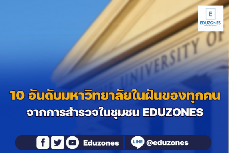 EZ Webmaster January 19, 2024 10 อันดับมหาวิทยาลัยในฝันของทุกคน จากการสำรวจของ EDUZONES EZ Webmaster January 19, 2024 มหาวิทยาลัยในฝันของทุกคนคือที่ไหนกันนะ? วันนี้ทาง EDUZONES จะมาอัพเดทมหาวิทยาลัยในฝันของชุมชน EDUZONES ในต้นปี2024 จากการทำแบบสำรวจในหัวข้อ มหาวิทยาลัยในฝันของทุกคนคือที่ไหน? จะมีมหาวิทยาลัยไหนบ้างมาดูกันเลย อันดับที่ 1. จุฬาลงกรณ์มหาวิทยาลัย อันดับที่ 2. มหาวิทยาลัยเกษตรศาสตร์ อันดับที่ 3. มหาวิทยาลัยเทคโนโลยีพระจอมเกล้าธนบุรี อันดับที่ 4. มหาวิทยาลัยธรรมศาสตร์ อันดับที่ 5.มหาวิทยาลัยมหิดล อันดับที่ 6. สถาบันเทคโนโลยีพระจอมเกล้าคุณทหารลาดกระบัง อันดับที่ 7.มหาวิทยาลัยกรุงเทพธนบุรี อันดับที่ 8.มหาวิทยาลัยราชภัฏสวนสุนันทา อันดับที่ 9.มหาวิทยาลัยศรีนครินทรวิโรฒ… Continue Reading