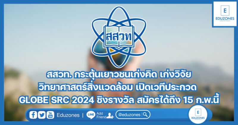 EZ Webmaster January 18, 2024 สสวท. กระตุ้นเยาวชนเก่งคิด เก่งวิจัย วิทยาศาสตร์สิ่งแวดล้อม เปิดเวทีประกวด GLOBE SRC 2024 ชิงรางวัล สมัครได้ถึง 15 ก.พ.นี้ EZ Webmaster January 18, 2024 สถาบันส่งเสริมการสอนวิทยาศาสตร์และเทคโนโลยี (สสวท.) โดยโครงการโลกศึกษาเพื่อพัฒนาสิ่งแวดล้อม (GLOBE) ขอเชิญนักเรียนระดับประถมศึกษาปีที่ 4 – มัธยมศึกษาปีที่ 6 พร้อมด้วยครูที่ปรึกษา สมัครเข้าร่วมประกวดผลงานวิจัยวิทยาศาสตร์สิ่งแวดล้อม ประจำปี 2567 GLOBE Student Research Competition 2024 (GLOBE SRC 2024) ชิงรางวัลพร้อมโล่และเกียรติบัตร สมัครออนไลน์ได้ถึงวันที่ 15 กุมภาพันธ์ 2567 นี้ ดูรายละเอียดได้ที่เว็บไซต์ ฝ่ายโลกศึกษาเพื่อพัฒนาสิ่งแวดล้อม GLOBE สสวท. https://globethailand.ipst.ac.th/news.php สอบถามที่อีเมล globesrc@proj.ipst.ac.th ทั้งนี้คณะผู้วิจัยประกอบด้วย นักเรียนจำนวน 2-3 คน กำลังศึกษาอยู่ในระดับชั้นประถมศึกษาปีที่ 4 ถึง มัธยมศึกษาปีที่ 6 และครูที่ปรึกษางานวิจัย 1 – 2 คนต่อ 1 งานวิจัย โดยครูที่ปรึกษางานวิจัยและนักเรียนต้องสังกัดในโรงเรียนเดียวกัน โรงเรียนสามารถส่งผลงานวิจัยเข้าร่วมการคัดเลือกได้ระดับชั้นละ 1 งานวิจัย โดยแบ่งเป็น 3 ระดับคือ ระดับประถมศึกษา… Continue Reading