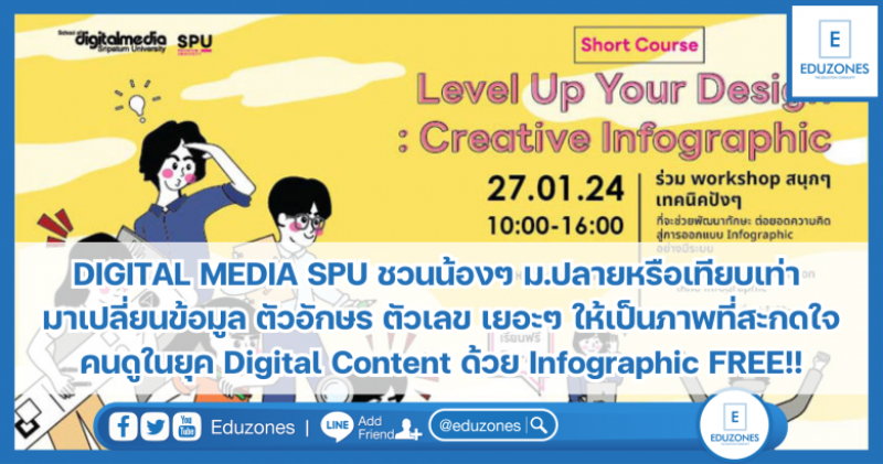 EZ Webmaster January 18, 2024 DIGITAL MEDIA SPU ชวนน้องๆ ม.ปลายหรือเทียบเท่า มาเปลี่ยนข้อมูล ตัวอักษร ตัวเลข เยอะๆ ให้เป็นภาพที่สะกดใจคนดูในยุค Digital Content ด้วย Infographic FREE!! EZ Webmaster January 18, 2024 หมดโควต้า ข้อมูลเยอะไป๊!!! อ่านแล้วไม่เข้าใจ คณะดิจิทัลมีเดีย มหาวิทยาลัยศรีปทุม ขอเชิญชวนน้องๆระดับมัธยมศึกษาตอนปลาย หรือเทียบเท่า มาเปลี่ยนข้อมูล ตัวอักษร ตัวเลข เยอะๆ ให้เป็นภาพที่สะกดใจคนดูในยุค Digital Content ด้วย Infographi ลงทะเบียนเรียน FREE!! : https://forms.gle/RNdaJgNuBhNMzxyp7 (สาารถดูเนื้อหาหลักสูตรได้ในฟอร์มลงทะเบียน) มาร่วมสนุก ปลดปล่อยความคิดสร้างสรรค์ เปิดโลกจินตนาการให้บรรเจิด เพราะ โลกยุคดิจิทัลต้องการนักออกแบบกราฟิกที่มีทักษะ และความสามารถรอบด้าน งานนี้ อบรมฟรี และได้รับ E certificate จากทางคณะดิจิทัลมีเดีย ด้วยนะ วันเสาร์ที่ 27 ม.ค. 67 เวลา 10.00-16.00 น. ณ อาคาร 11 มหาวิทยาลัยศรีปทุม กทม.(บางเขน) #คณะดิจิทัลมีเดีย #มหาวิทยาลัยศรีปทุม #SripatumUniversity #SPU #Dek67 #Dek68 #Dek69 Continue Reading