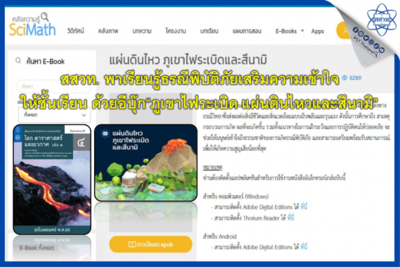 EZ Webmaster January 3, 2024 สสวท. พาเรียนรู้ธรณีพิบัติภัยเสริมความเข้าใจให้ชั้นเรียน ด้วยอีบุ๊ก “ภูเขาไฟระเบิด แผ่นดินไหวและสึนามิ” EZ Webmaster January 3, 2024 สถาบันส่งเสริมการสอนวิทยาศาสตร์และเทคโนโลยี (สสวท.) เสริมความเข้าใจธรณีวิทยากับสื่อการเรียนรู้อีบุ๊กเรื่อง ภูเขาไฟระเบิด แผ่นดินไหวและสึนามิ ธรณีพิบัติภัยที่เกิดจากกระบวนการเปลี่ยนแปลงทางธรณีวิทยา ส่งผลต่อสิ่งมีชีวิตและสิ่งแวดล้อมอย่างฉับพลันรุนแรง ไปศึกษาถึงสาเหตุ กระบวนการเกิด ผลที่จะเกิดขึ้น รวมทั้งแนวทางในการเฝ้าระวังและการปฏิบัติตนให้ปลอดภัย โดยเฉพาะยังช่วยให้มนุษย์เข้าใจถึงธรรมชาติของการเกิดธรณีพิบัติภัย และสามารถเตรียมพร้อมรับมือสถานการณ์เพื่อให้เกิดความสูญเสียน้อยที่สุด ใช้เป็นสื่อการเรียนรู้ในชั้นเรียนก็ได้ หรือ น้อง ๆ ทบทวนเสริมความเข้าใจก็สะดวก ดูรายละเอียดและดาวน์โหลดฟรีที่ คลังความรู้ SciMath สสวท. https://www.scimath.org/ebook-earthscience/item/8464 นอกจากนี้คุณครูสามารถดาวน์โหลดคู่มือครูรายวิชาเพิ่มเติมวิทยาศาสตร์และเทคโนโลยี โลก ดาราศาสตร์ และอวกาศ ชั้นมัธยมศึกษาปีที่ 4 เล่ม 1 เพื่อศึกษาแนวการจัดการเรียนการสอนหัวข้อนี้ หลักฐานทางธรณีวิทยาที่พบในปัจจุบัน ลำดับเหตุการณ์ทางธรณีวิทยาในอดีต สาเหตุ กระบวนการเกิดแผ่นดินไหว ภูเขาไฟระเบิด สึนามิ ผลกระทบ แนวทาง การเฝ้าระวังและการปฏิบัติตนให้ปลอดภัย… Continue Reading
