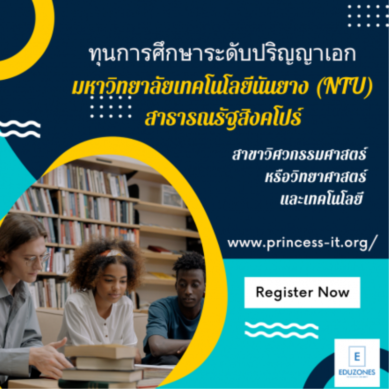 ทุนปริญญาเอกจาก NTU สิงคโปร์ ประจำปี 2569 EZ WebmasterNovember 28, 2025 📰 ทุนปริญญาเอกจาก NTU สิงคโปร์ ประจำปี 2569 ด้วย มหาวิทยาลัยเทคโนโลยีนันยาง (Nanyang Technological University: NTU) สาธารณรัฐสิงคโปร์ ได้ทูลเกล้าฯ ถวายทุนการศึกษาแด่ สมเด็จพระกนิษฐาธิราชเจ้า กรมสมเด็จพระเทพรัตนราชสุดาฯ เพื่อพระราชทานแก่ผู้มีคุณสมบัติเหมาะสม…