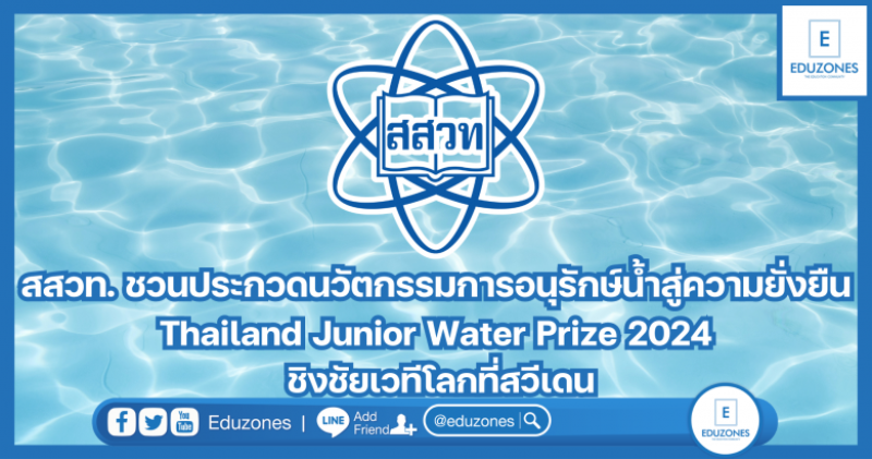 EZ Webmaster January 29, 2024 สสวท. ชวนเยาวชนประกวดนวัตกรรมการอนุรักษ์น้ำสู่ความยั่งยืน Thailand Junior Water Prize 2024 ชิงชัยเวทีโลกที่สวีเดน EZ Webmaster January 29, 2024 สถาบันส่งเสริมการสอนวิทยาศาสตร์และเทคโนโลยี (สสวท.) ชวนเชิญเยาวชนอายุ 15-19 ปี ส่งผลงานเข้าร่วม การประกวดสิ่งประดิษฐ์และนวัตกรรมในการอนุรักษ์ทรัพยากรน้ำ ปี 2567 (Thailand Junior Water Prize 2024) โดยส่งผลงานวิจัยด้านวิทยาศาสตร์ที่เป็นสิ่งประดิษฐ์ ภายใต้แนวคิด “นวัตกรรมการอนุรักษ์น้ำสู่ความยั่งยืน” (Water Conservation Innovation toward Sustainability) โดยให้ความสำคัญเกี่ยวกับ “Bridging Borders: Water for a peaceful and sustainable future” ผู้ชนะเลิศจะได้เข้าร่วมการประกวด Stockholm Junior Water Prize 2024 ณ ราชอาณาจักรสวีเดน คุณสมบัติผู้เข้าประกวดเป็นนักเรียนอายุระหว่าง 15–19 ปี กำลังศึกษาอยู่ในระดับมัธยมศึกษาตอนต้น… Continue Reading