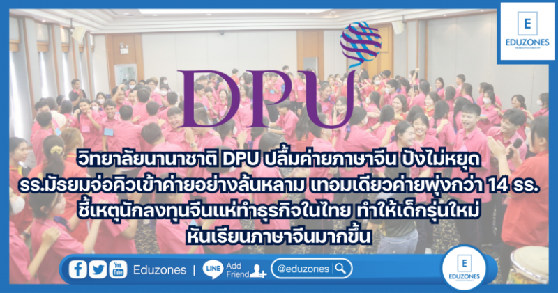 EZ Webmaster January 25, 2024 วิทยาลัยนานาชาติ DPU ปลื้มค่ายภาษาจีน ปังไม่หยุด รร.มัธยม จ่อคิวเข้าค่ายอย่างล้นหลาม เทอมเดียวค่ายพุ่งกว่า 14 ร.ร. ชี้เหตุนักลงทุนจีนแห่ทำธุรกิจในไทย ทำให้เด็กรุ่นใหม่หันเรียนภาษาจีนมากขึ้น EZ Webmaster January 25, 2024 หลักสูตรภาษาจีนธุรกิจ วิทยาลัยนานาชาติ (IC) มหาวิทยาลัยธุรกิจบัณฑิตย์ (DPU) ร่วมกับสถาบันขงจื่อเส้นทางสายไหมทางทะเล จัดกิจกรรม “CHINESE FOR FUN ONE DAY CAMP“ หรือค่ายภาษาวัฒนธรรมและธุรกิจจีน โดยล่าสุดมีนักเรียนจากโรงเรียนราชวินิตมัธยม ชลประทานวิทยา เซนต์โยเซฟคอนแวนต์ จำนวนกว่า 300 คน เข้าร่วมกิจกรรม ณ มหาวิทยาลัยธุรกิจบัณฑิตย์ เมื่อเร็วๆนี้ อาจารย์จุฑามาศ ลิมศุภนาค หัวหน้าหลักสูตรภาษาจีนธุรกิจ วิทยาลัยนานาชาติ มหาวิทยาลัยธุรกิจบัณฑิตย์ (DPU) เปิดเผยว่า วิทยาลัยนานาชาติ (IC) มหาวิทยาลัยธุรกิจบัณฑิตย์ จัดกิจกรรม “CHINESE… Continue Reading