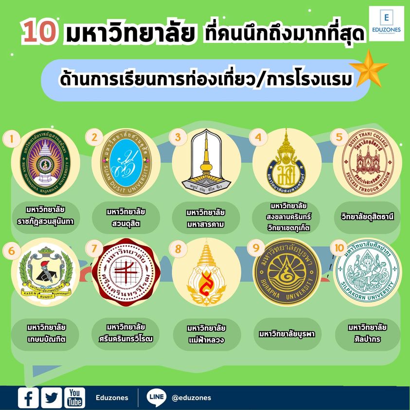 EZ Webmaster February 22, 2024 EZ Webmaster February 22, 2024 รีวิว วิทยาลัยดุสิตธานี สถาบันเอกชนอันดับ 1 ที่คนคิดถึงมากที่สุดด้านการเรียนท่องเที่ยว/โรงแรม จากการสำรวจของ Eduzones หากนึกถึงสถาบันที่คนนึกถึงด้านการท่องและการเที่ยวโรงแรมมากที่สุด เชื่อว่าวิทยาลัยดุสิตธานี จะเป็นหนึ่งชื่อสถาบันที่ทุกคนนึกถึงอย่างแน่นอน พิสูจน์ได้จากการสำรวจของทาง Eduzones คลิก ที่ทางวิทยาลัยดุสิตธานี อยู่ในอันดับที่ 5 ที่เป็นสถาบันที่ถูกนึกถึงมากที่สุดและมาเป็นอันดับ 1 ของทางสถาบันเอกชน Eduzones เลยขอพาทุกคนมาดูข้อมูลของทางวิทยาลัยดุสิตธานีว่ามีข้อมูลน่ารู้อะไรบ้างและที่สำคัญคือทางวิทยาลัยได้เปิดสอนหลักสูตรอะไร มีสาขาอะไรที่น่าสนใจบ้าง วิทยาลัยดุสิตธานี มีชื่อ ภาษาอังกฤษ คือ Dusit Thani College ตัวอักษรย่อ วดธ. / DTC เป็นสถาบันการศึกษาเอกชน ซึ่งเป็นส่วนหนึ่งของ เครือดุสิตธานี หรือ Dusit International ที่ปีนี้กำลังจะฉลองครบ 75 ปี โดยมีโรงแรมในเครืออย่างโรงแรมดุสิตธานี โรงแรมชั้นนำระดับ 5 ดาวในประเทศไทยที่มีประวัติก่อตั้งยาวนานกว่า 50 ปี โรงแรม dusitD2 โรงแรม ASAI ฯลฯ และขยายธุรกิจสู่ต่างประเทศอย่างต่อเนื่อง จนได้ชื่อว่าเป็นผู้นำของสถานศึกษาด้านธุรกิจบริการ เพราะเป็นสถาบันอุดมศึกษาแห่งแรกของเมืองไทยที่สอนทางด้านธุรกิจบริการโดยตรงมายาวนานจนครบ 31 ปีแล้วในปีนี้ ตราประจำวิทยาลัย รูปปราสาทดุสิต หมายถึง สถาบันการศึกษาแห่งนี้เป็นองค์กรหนึ่ง ในเครือของบริษัทดุสิตธานี จำกัด (มหาชน) มีความประสงค์ที่จะให้ผู้ที่มาศึกษา ได้มีความรู้ประสบการณ์ และสติปัญญา เพื่อที่จะได้ประสบความสำเร็จในการดำรงชีวิตอย่างมีความสุข สุขสำเร็จด้วยปัญญา (Success Through Wisdom) หมายถึง การใช้สติปัญญาทำให้ประสบความสำเร็จในการดำรงชีวิต ที่ก่อให้เกิดความสุขอย่างแท้จริง ความหมายโดยรวม คือ วิทยาลัยดุสิตธานีเป็นแหล่งประสิทธิ์ประสาทวิทยาการ และประสบการณ์ พัฒนาสติปัญญา และความมุ่งมั่นในการศึกษาหาความรู้ เพื่อทำประโยชน์ให้แก่สังคม ด้วยความซื่อสัตย์สุจริตอันส่งผลให้ประสบความสำเร็จในการดำรงชีวิต อย่างมีความสุขที่แท้จริง สีประจำวิทยาลัย สีแดงอมน้ำตาล หมายถึง ความมุ่งมั่นในการศึกษาเพื่อทำประโยชน์ให้แก่สังคม สีขาว หมายถึง ความสะอาด ซื่อสัตย์ สุจริต ต้นไม้ประจำวิทยาลัย ต้นมะฮอกกานี เปรียบวิทยาลัยเป็นต้นมะฮอกกานีที่ค่อย ๆ เติบโตสูงใหญ่ ด้วยความที่เป็นไม้ยืนต้นก็คล้ายกับสถาบันแห่งนี้กำลัง เติบโตงอกงาม การผลัดใบก็เปรียบเสมือนการผลัดเปลี่ยนรุ่นของนักศึกษา รุ่นของคนที่ทำงานไป และ คุณสมบัติของไม้มะฮอกกานีคือ สวยงาม แข็งแรง ทนท