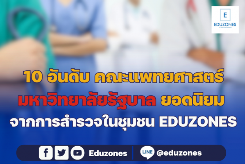 EZ Webmaster February 1, 2024 10 อันดับ คณะแพทยศาสตร์ มหาวิทยาลัยรัฐบาล ยอดนิยม จากการสำรวจของ EDUZONES EZ Webmaster February 1, 2024 ถ้าพูดถึง คณะแพทยศาสตร์ มหาวิทยาลัยรัฐบาล ทุกคนจะนึกถึงมหาวิทยาลัยไหน ทาง EDUZONES ได้สำรวจความคิดเห็นของคนส่วนใหญ่ในชุมชน ในหัวข้อ ถ้านึกถึงคณะแพทยศาสตร์ มหาวิทยาลัยรัฐบาล ทุกคนนึกถึงมหาวิทยาลัยไหน เริ่มเก็บข้อมูลตั้งแต่วันที่ 7 มกราคม 2567 จะมีที่ไหนบ้าง มาดูกันเลย อันดับที่ 1 มหาวิทยาลัยมหิดล อันดับที่ 2 มหาวิทยาลัยขอนแก่น อันดับที่ 3 จุฬาลงกรณ์มหาวิทยาลัย อันดับที่ 4 มหาวิทยาลัยเชียงใหม่ อันดับที่ 5 มหาวิทยาลัยสงขลานครินทร์ อันดับที่… Continue Reading