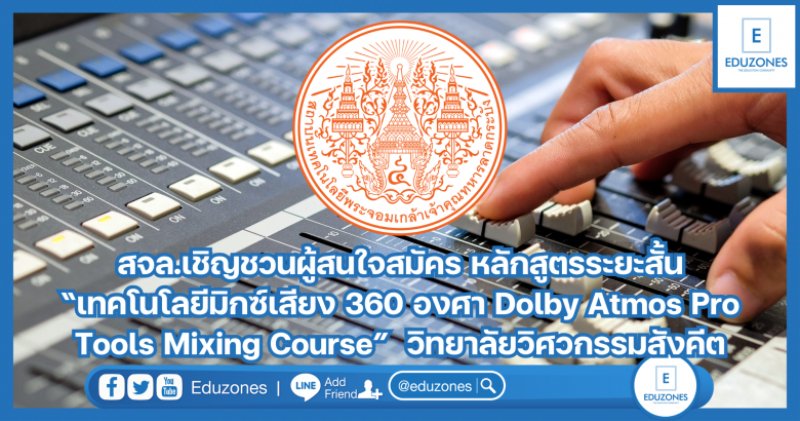 EZ Webmaster February 16, 2024 สจล.เชิญชวนผู้สนใจสมัคร หลักสูตรระยะสั้น “เทคโนโลยีมิกซ์เสียง 360 องศา Dolby Atmos Pro Tools Mixing Course” วิทยาลัยวิศวกรรมสังคีต EZ Webmaster February 16, 2024 วิทยาลัยวิศวกรรมสังคีต สถาบันเทคโนโลยีพระจอมเกล้าเจ้าคุณทหารลาดกระบังกำหนดจัดงานอบรมหลักสูตรระยะสั้น “เทคโนโลยีมิกซ์เสียง360 องศา Dolby Atmos Pro Tools Mixing Course” ให้กับบุคคลที่สนใจสมัครเรียน สอนโดย อาจารย์ผู้เชี่ยวชาญด้าน Dolby Atmos Mixing อันดับ 1 ของประเทศไทย ได้แก่ อ.บอย อินคา (วรวิทย์ พิกุลทอง), อ.ติ๊ด (โสฬส ปุณกะบุตร), อ.หนี่ง (เกรียงไกร กุศลจริยากูล) เรียนทั้งหมด 4… Continue Reading