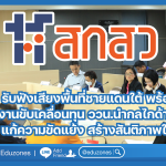 สกสค. เดินหน้าดูแลครูผู้ได้รับผลกระทบเหตุชายแดน ดร.พีระพันธ์ นำทีมช่วยเหลือถึงศรีสะเกษ tui sakrapeeDecember 17, 2025 ดร.พีระพันธ์ เหมะรัต เลขาธิการคณะกรรมการ สกสค. พร้อมด้วยนายสมาน เวียงปฏิ ศึกษาธิการจังหวัดศรีสะเกษ รักษาการแทนผู้อำนวยการสำนักงาน สกสค. จังหวัดศรีสะเกษ นางวิมลศรี มณฑาทิพย์ ผู้อำนวยการสำนักการคลัง และนางสาวบุญสม เธียรฤกษ์ รักษาการแทนผู้อำนวยการสำนักสวัสดิการครู ลงพื้นที่ศูนย์พักพิงชั่วคราวจังหวัดศรีสะเกษ เพื่อให้กำลังใจและมอบสิ่งของเครื่องอุปโภคบริโภคที่จำเป็นแก่ครูและบุคลากรทางการศึกษาที่ได้รับผลกระทบจากเหตุความไม่สงบในพื้นที่ชายแดนไทย–กัมพูชาเป็นการช่วยบรรเทาความเดือดร้อนในเบื้องต้นให้ถึงมือผู้ได้รับผลกระทบโดยตรง… เลขาธิการ สกสค. ลงพื้นที่อุบลฯ เยี่ยมครูชายแดนไทย–กัมพูชา มอบถุงยังชีพ–จัดงบช่วยเหลือ 7 จังหวัด tui sakrapeeDecember 17, 2025 ดร.พีระพันธ์ เหมะรัต เลขาธิการคณะกรรมการ สกสค. พร้อมด้วยนายวรวิทย์ โสภาพันธ์ (รักษาการผู้อำนวยการสำนักงาน สกสค. จังหวัดอุบลราชธานี) นางวิมลศรี มณฑาทิพย์ ผู้อำนวยการสำนักการคลัง และนางสาวบุญสม เธียรฤกษ์ รักษาการแทนผู้อำนวยการสำนักสวัสดิการครู สำนักงานคณะกรรมการ สกสค. ลงพื้นที่เยี่ยมเยียนมอบถุงยังชีพ และให้กำลังใจแก่ครูและบุคลากรทางการศึกษา… จุฬา – มหิดล ผนึกกำลังยกระดับ “AnthoRice™ Complex” จากงานวิจัยสู่การทดสอบทางคลินิกรพ.ศิริราช EZ WebmasterDecember 17, 2025 จุฬา – มหิดล ผนึกกำลังยกระดับ “AnthoRice™ Complex” จากงานวิจัยสู่การทดสอบทางคลินิกรพ.ศิริราช เมื่อวันที่ 17 ธันวาคม 2568 จุฬาลงกรณ์มหาวิทยาลัย และมหาวิทยาลัยมหิดล ได้จัดงานแถลงข่าวโครงการ “AnthoRice™ Complex – From… สำนักงาน ก.พ. เปิดรับสมัครสอบ e-Exam ภาค ก. ประจำปี 2569 EZ WebmasterDecember 17, 2025 📢 สำนักงาน ก.พ. เปิดรับสมัครสอบ e-Exam ภาค ก. ประจำปี 2569 สอบวัดความรู้ความสามารถทั่วไป ด้วยระบบอิเล็กทรอนิกส์ สำนักงานคณะกรรมการข้าราชการพลเรือน (ก.พ.) ประกาศเปิดรับสมัครสอบเพื่อวัดความรู้ความสามารถทั่วไป ภาค ก. ด้วยระบบอิเล็กทรอนิกส์ (e-Exam)… กิจกรรม ราชมงคลพระนคร เข้าร่วมกิจกรรม “HUSO Green Standard: คัดแยกอย่างรู้ค่า สู่การขับเคลื่อนเชิงพื้นที่ในเขตดุสิต\ tui sakrapeeDecember 16, 2025 ดร.ณัฐวรพล รัชสิริวัชรบุล อธิการบดีมหาวิทยาลัยเทคโนโลยีราชมงคลพระนคร มอบหมายให้ ผศ.ศรัทธา แข่งเพ็ญแข พร้อมผู้แทนบุคลากรและนักศึกษา เข้าร่วมกิจกรรม HUSO Green Standard Sort&Save เมื่อวันที่ 9 ธ.ค.2568 โดยได้รับเกียรติจาก รศ.ดร. ยุทธพงษ์… สัมผัสลมหนาวที่ “เกิ้งแคมป์” แลนด์มาร์กใหม่ มมส ผนึกพลังนิสิต 3 คณะ พลิกโฉมงานวิจัยสู่แหล่งท่องเที่ยวเชิงนิเวศ EZ WebmasterDecember 15, 2025 สัมผัสลมหนาวที่ 