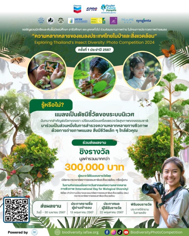 EZ Webmaster March 21, 2024 EZ Webmaster March 21, 2024 เชฟรอน – SPRC จับมือพันธมิตร เฟ้นหาสุดยอดช่างภาพรุ่นใหม่ ในโครงการประกวดถ่ายภาพ “ความหลากหลายของแมลงประเทศไทยในป่าและสิ่งแวดล้อมรอบตัวเรา” บริษัท เชฟรอนประเทศไทยสำรวจและผลิต จำกัด (เชฟรอน) และ บริษัท สตาร์ ปิโตรเลียม รีไฟน์นิ่ง จำกัด (มหาชน) (SPRC) ผู้ดำเนินโครงการ “เติมพลังรักษ์ยั่งยืน สู่ผืนป่าไทย Foster Future Forests” สานต่อภารกิจเพื่อสิ่งแวดล้อมและการศึกษาผ่านพลังของภาพถ่าย ผนึกกำลังพันธมิตร อันได้แก่ สมาคมส่งเสริมพัฒนากำลังคนสเตมเพื่ออนาคต (IAFSW), สำนักงานนโยบายและแผนทรัพยากรธรรมชาติและสิ่งแวดล้อม (ONEP), สถาบันส่งเสริมการสอนวิทยาศาสตร์และเทคโนโลยี (สสวท.), มหาวิทยาลัยเกษตรศาสตร์ และ มหาวิทยาลัยธรรมศาสตร์ เชิญชวนนักเรียนระดับชั้นมัธยมศึกษา อาชีวศึกษา และบุคคลทั่วไป ร่วมส่งผลงานในโครงการประกวดถ่ายภาพ “ความหลากหลายของแมลงประเทศไทยในป่าและสิ่งแวดล้อม (Exploring Thailand’s Insect Diversity: Photo Challenge)” ประจำปี 2567 เพื่อร่วมเฟ้นหาสุดยอดช่างภาพรุ่นใหม่ พร้อมส่งเสริมการเรียนรู้ด้านความหลากหลายทางชีวภาพและความสำคัญของแมลงในฐานะดัชนีชี้วัดของสิ่งมีชีวิต ชิงรางวัลมูลค่ารวมกว่า 300,000 บาท โดยสามารถส่งผลงานได้ตั้งแต่วันนี้ – 30 เมษายน 2567 ผ่าน https://biodiversity.iafsw.org หรือติดตามรายละเอียดเพิ่มเติมได้ที่ https://www.facebook.com/BiodiversityPhotoCompetition การประกวดถ่ายภาพ “ความหลากหลายของแมลงประเทศไทยในป่าและสิ่งแวดล้อมรอบตัวเรา (Exploring Thailand’s Insect Diversity: Photo Challenge)” นี้จัดขึ้นเป็นปีแรกในประเทศไทย ผ่านความตั้งใจที่มุ่งให้ความสำคัญกับการสร้างสรรค์ผลงานเพื่อสร้างแรงบันดาลใจในการอนุรักษ์ผ่านภาพถ่าย ซึ่งถือเป็นอีกหนึ่งโครงการที่เปิดพื้นที่ให้เยาวชน และบุคคลทั่วไป ได้ใกล้ชิดกับธรรมชาติมากขึ้น อีกทั้งยังได้เสริมความรู้ด้านสะเต็มศึกษาเกี่ยวกับระบบนิเวศและความหลากหลายทางชีวภาพในแต่ละพื้นที่ผ่านการสังเกต เรียนรู้พฤติกรรมของแมลงที่เชื่อมโยงกับการเปลี่ยนแปลงของธรรมชาติ และชมความงามที่สร้างสรรค์จากธรรมชาติผ่านเลนส์กล้อง นอกจากนี้ ทางโครงการฯ ยังมุ่งส่งต่อพลังของการอนุรักษ์ผ่านภาพถ่ายในวงกว้าง โดยผลงานที่ได้รับคัดเลือกจะได้เผยแพร่สู่สาธารณะ พร้อมเดินหน้าสร้างแพลตฟอร์มการจำแนกสิ่งมีชีวิต หรือ อนุกรมวิธาน (Taxonomy) ที่จะเป็นแหล่งรวบรวมข้อมูลสำคัญเกี่ยวกับแมลงเพื่อให้นักวิทยาศาสตร์จากทั่วโลกสามารถเข้าถึงข้อมูลแบบ real time เพื่อศึกษาความหลากหลายทางชีวภาพของสิ่งมีชีวิตในเขตร้อนต่อไป ผู้เข้าร่วมประกวดสามารถส่งผลงานได้ทั้งภาพถ่ายหรือวิดีโอคลิป โดยการแข่งขันจะแบ่งเป็น 3 ประเภ