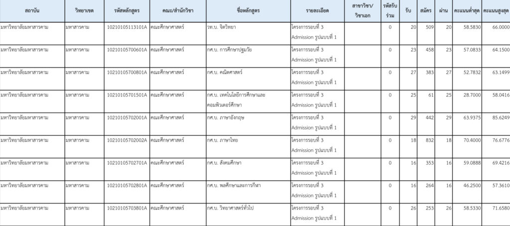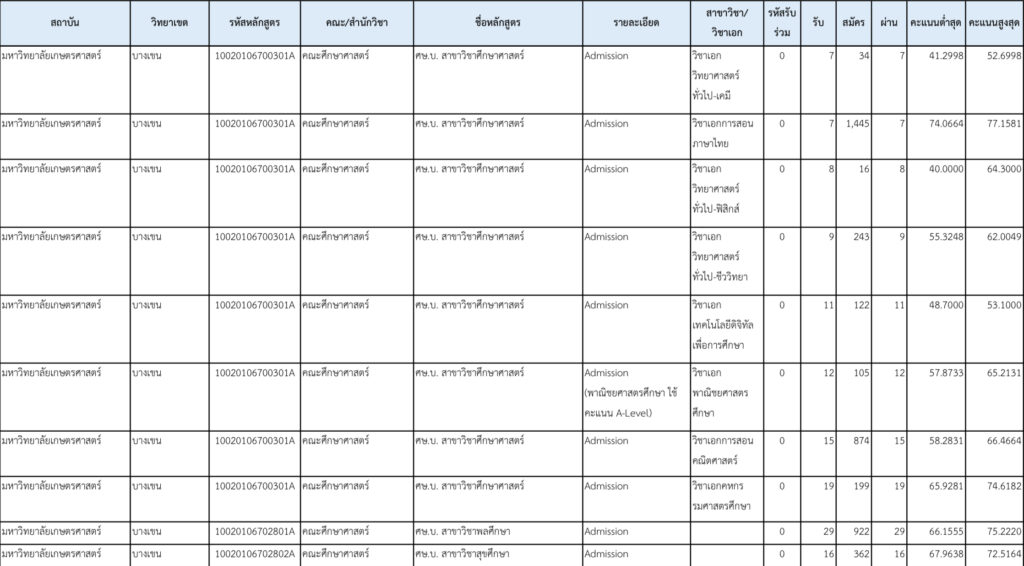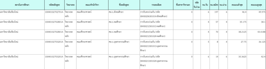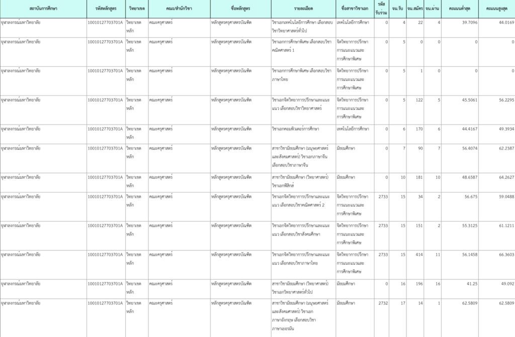 EZ Webmaster April 26, 2024 EZ Webmaster April 26, 2024 รวมเกณฑ์คะแนนสูงสุด – ต่ำสุด ศึกษาศาสตร์/ครุศาสตร์ TCAS รอบ 3 ปี 64-66 สวัสดีครับทุกคน ช่วงนี้รอบ Admission ก็ใกล้เข้ามาเต็มทีแล้ว วันนี้ทาง EDUZONES ก็ได้รวมคะแนนสูงสุดและต่ำสุด ของคณะครุศาสตร์/ศึกษาศาสตร์ ปี 2564 – 2566 มาแบ่งปันให้น้องๆได้เปรียบเทียบกัน ถ้าพร้อมแล้ว มาดูกันเล้ยยย 1.จุฬาลงกรณ์มหาวิทยาลัย คณะครุศาสตร์ ปีการศึกษา 2564 ดูข้อมูลเพิ่มเติม คลิกที่นี่ ปีการศึกษา 2565 ดูข้อมูลเพิ่มเติม คลิกที่นี่ ปีการศึกษา 2566 ดูข้อมูลเพิ่มเติม คลิกที่นี่ สำหรับเกณฑ์การคัดเลือกในรอบที่ 3 ของปี 2567 มีรายละเอียดดังนี้ ดูรายละเอียดเกณฑ์การคัดเลือกรอบ 3 ปี 2567 คณะครุศาสตร์ จุฬาลงกรณ์มหาวิทยาลัย เพิ่มเติม คลิกที่นี่ 2.มหาวิทยาลัยเกษตรศาสตร์ คณะศึกษาศาสตร์ ปีการศึกษา 2564 ดูข้อมูลเพิ่มเติม คลิกที่นี่ ปีการศึกษา 2565 ดูข้อมูลเพิ่มเติม คลิกที่นี่ ปีการศึกษา 2566 ดูข้อมูลเพิ่มเติม คลิกที่นี่ สำหรับเกณฑ์การคัดเลือกในรอบที่ 3 ของปี 2567 มีรายละเอียด ดังนี้ ดูรายละเอียดเกณฑ์การคัดเลือกรอบ 3 ปี 2567 คณะศึกษาศาสตร์ มหาวิทยาลัยเกษตรศาสตร์ เพิ่มเติม คลิกที่นี่ 3.มหาวิทยาลัยขอนแก่น คณะศึกษาศาสตร์ ปีการศึกษา 2564 ดูข้อมูลเพิ่มเติม คลิกที่นี่ ปีการศึกษา 2565 ดูข้อมูลเพิ่มเติม คลิกที่นี่ ปีการศึกษา 2566 สำหรับเกณฑ์การคัดเลือกในรอบที่ 3 ของปี 2567 รอประกาศจากทางมหาวิทยาลัย 4.มหาวิทยาลัยเชียงใหม่ คณะศึกษาศาสตร์ ปีการศึกษา 2564 ดูข้อมูลเพิ่มเติม คลิกที่นี่ ปีการศึกษา 2565 ดูข้อมูลเพิ่มเติม คลิกที่นี่ ปีการศึกษา 2566 ดูข้อมูลเพิ่มเติม คลิกที่นี่ สำหรับเกณฑ์การคัดเลือกในรอบที่ 3 คณะศึกษาศาสตร์ มหาวิทยาลัยเชียงใหม่ ของปี 2567 มีรายละเอียดดังนี้ ดูรายละเอียดเกณฑ์การคัดเลือกรอบ 3 ปี 2567 คณะศึกษาศาสตร์ มหาวิทยาลัยเชียงใหม่ เพิ่มเติม คลิกที่นี่ 5.มหาวิทยาลัยศิลปากร คณะศึกษาศาสตร์ ปีการศึกษา 2564 ดูข้อมูลเพิ่มเติม คลิกที่นี่ ปีการศึกษา 2565 ดูข้อมูลเพิ่มเติม คลิกที่นี่ ปีการศึกษา 2566 ดูข้อมูลเพิ่มเติม คลิกที่นี่ สำหรับเกณฑ์การคัดเลือกในรอบที่ 3 คณะศึกษาศาสตร์ มหาวิทยาลัยศิลปากร ของปี 2567 มีรายละเอียดดังนี้ ดูรายละเอียดเกณฑ์การคัดเลือกรอบ 3 ปี 2567 คณะศึกษาศาสตร์ มหาวิทยาลัยศิลปากร เพิ่มเติม คลิกที่นี่ 6.มหาวิทยาลัยศรีนครินทรวิโรฒ คณะศึกษาศาสตร์ ปีการศึกษา 2564 ดูข้อมูลเพิ่มเติม คลิกที่นี่ ปีการศึกษา 2565 ดูข้อมูลเพิ่มเติม คลิกที่นี่ ปีการศึกษา 2566 ดูข้อมูลเพิ่มเติม คลิกที่นี่ สำหรับเกณฑ์การคัดเลือกในรอบที่ 3 คณะศึกษาศาสตร์ มหาวิทยาลัยศรีนครินทรวิโรฒ ของปี 2567 มีรายละเอียดดังนี้ ดูรายละเอียดเกณฑ์การคัด