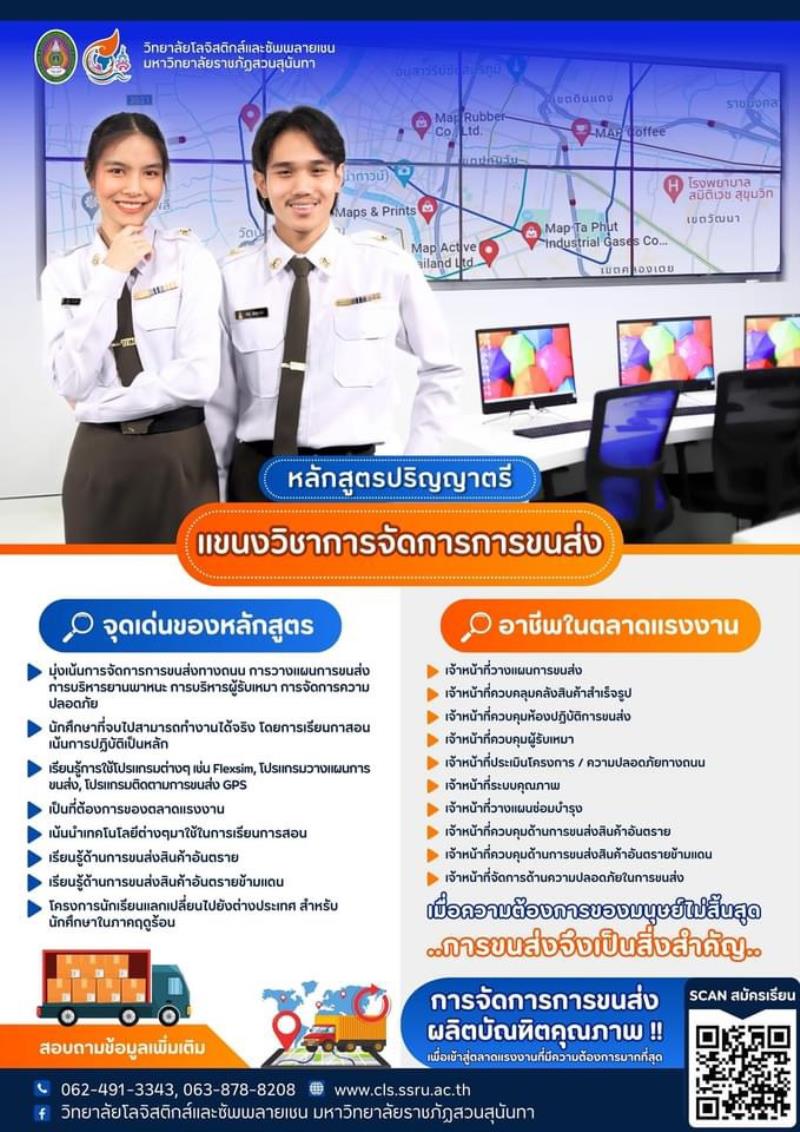 EZ Webmaster April 30, 2024 EZ Webmaster April 30, 2024 เปิดรับสมัครแล้ว หลักสูตรปริญญาตรี การจัดการขนส่ง วิทยาลัยโลจิสติกส์และซัพพลายเชน มหาวิทยาลัยราชภัฏสวนสุนันทา สำหรับสายอาชีพสุดอินเทรนด์ ที่เป็นมากกว่าขนส่ง จะต้องนึกถึงการเรียน หลักสูตรปริญญาตรี แขนงวิชาการจัดการขนส่งวิทยาลัยโลจิสติกส์และซัพพลายเชนมหาวิทยาลัยราชภัฏสวนสุนันทา ซึ่งตอนนี้เค้าได้เปิดรับสมัครนักศึกษาแล้วนะ แต่ก่อนทีเราจะสมัครเรียนนั้นมาดูจุดเด่นของหลักสูตรนี้กันก่อนดีกว่าครับ – เป็นหลักสูตรที่เน้นการใช้เทคโนโลยีสารสนเทศ เช่น การเรียนในห้องปฏิบัติการ GPS – การจัดการด้านเอกสารขนส่ง – มีการจัดการเรียนการสอนร่วมกับบริษัทชั้นนำด้านขนส่ง – เป็นที่ต้องการของตลาดแรงงาน – มีโครงการนักเรียนแลกเปลี่ยนไปยังต่างประเทศ สำหรับนักศึกษาในภาคฤดูร้อน – เน้นนำเทคโนโลยีต่างๆมาใช้ในการเรียนการสอน และน้องๆไม่ต้องห่วงเลยครับว่าจบไปจะหางานยาก เพราะในหลักสูตรนี้สามารถต่อยอดได้หลากหลายอาชีพเลยทีเดียว และอาชีพในตลาดแรงงานที่รองรับ ได้แก่ – เจ้าหน้าที่วางแผนการขนส่ง – เจ้าหน้าที่ควบคุมคลังสินค้าสำเร็จรูป – เจ้าหน้าที่ควบคุมห้องปฏิบัติการขนส่ง – เจ้าหน้าที่ควบคุมผู้รับเหมา – เจ้าหน้าที่ประเมินโครงการ / ความปลอดภัยทางถนน – เจ้าหน้าที่ระบบคุณภาพ – เจ้าหน้าที่วางแผนซ่อมบำรุง – เจ้าหน้าที่ควบคุมด้านขนส่งสินค้าอันตราย – เจ้าหน้าที่ควบคุมด้านขนส่งสินค้าอันตรายข้ามแดน – เจ้าหน้าที่จัดการด้านความปลอดภัยในการขนส่ง จะเห็นได้ว่ามีอาชีพที่รองรับเยอะมาก น้องๆคนไหนที่สนใจสามารถสมัครเข้าเรียนได้เลยนะครับ เค้ารับทั้งผู้จบ ม.6/ปวช/ปวส และกศน. คลิกที่นี่เพื่อสมัคร