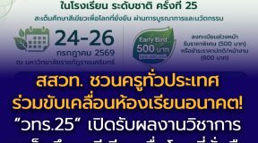 สสวท. ชวนครูทั่วประเทศร่วมขับเคลื่อนห้องเรียนอนาคต! “วทร.25” เปิดรับผลงานวิชาการ สะเต็มศึกษาสีเขียวเพื่อโลกที่ยั่งยืน ถึง 30 มีนาคม นี้ EZ WebmasterMarch 25, 2026 สถาบันส่งเสริมการสอนวิทยาศาสตร์และเทคโนโลยี (สสวท.) ร่วมกับมหาวิทยาลัยราชภัฏราชนครินทร์ (มรร.) และสมาคมครูวิทยาศาสตร์ คณิตศาสตร์และเทคโนโลยีแห่งประเทศไทย (สวคท.) ขอเชิญครู อาจารย์ และบุคลากรทางการศึกษาทั่วประเทศ ร่วมส่งผลงานวิชาการเพื่อนำเสนอใน “การประชุมวิชาการวิทยาศาสตร์ คณิตศาสตร์ในโรงเรียน ระดับชาติ ครั้งที่ 25 (วทร.25)” จัดระหว่างวันที่ 24–26 กรกฎาคม 2569 ณ มหาวิทยาลัยราชภัฏราชนครินทร์ จ.ฉะเชิงเทรา… อัปเดต 2568–2569 ไทยอยู่อันดับไหน? เปิด 10 ประเทศชั่วโมงเรียนสูงสุดในโลก ปี 2026 EZ WebmasterMarch 24, 2026 วิเคราะห์ | การศึกษาโลก | ชั่วโมงเรียน | อัปเดต 2568–2569 ไทยอยู่อันดับไหน? เปิด 10 ประเทศชั่วโมงเรียนสูงสุดในโลก ปี 2026 เทียบค่าเฉลี่ย OECD พร้อมวิเคราะห์ข้อดีและข้อเสียของการมีชั่วโมงเรียนมาก โดย… เปิดคู่มือใหม่พร้อมดาวน์โหลด “สมศ. 2567–2571” ปฐมวัย–ขั้นพื้นฐาน ปรับเกณฑ์ประเมินคุณภาพการศึกษาไทย EZ WebmasterMarch 24, 2026 📘เปิดคู่มือใหม่พร้อมดาวน์โหลด “สมศ. 2567–2571” ปฐมวัย–ขั้นพื้นฐาน ปรับเกณฑ์ประเมินคุณภาพการศึกษาไทย สำนักงานรับรองมาตรฐานและประเมินคุณภาพการศึกษา (องค์การมหาชน) หรือ สมศ. (ONESQA) ได้เผยแพร่ คู่มือการประเมินคุณภาพภายนอกการศึกษา พ.ศ. 2567–2571 ฉบับใหม่ ครอบคลุมทั้งระดับ ปฐมวัย และ… ครูจีนเฮ! คุรุสภาจับมือสมาคมครูจีน จัดอบรมมาตรฐานความรู้วิชาชีพครู ภาคภาษาจีน เปิดรับสมัครรุ่นแรก ภายใน 27 มี.ค. และรุ่นต่อไปภายในเดือน เม.ย.69 EZ WebmasterMarch 23, 2026 ผศ.ดร.อมลวรรณ วีระธรรมโม เลขาธิการคุรุสภา เปิดเผยว่า เมื่อเร็วๆ นี้ ตนได้มอบหมายให้ ผศ.ดร.พลรพี ทุมมาพันธ์ รองเลขาธิการคุรุสภา เป็นประธานในพิธีลงนามบันทึกความเข้าใจความร่วมมือทางวิชาการในการดำเนินงานอบรมหลักสูตรมาตรฐานความรู้วิชาชีพครูภาคภาษาจีนกับสมาคมครูจีน (ประเทศไทย) โดยมีดร.วรรณา ลอลือเลิศ นายกสมาคมครูจีน (ประเทศไทย) พร้อมด้วยคณะผู้บริหารและเจ้าหน้าที่สมาคมครูจีน (ประเทศไทย)… กิจกรรม ชวนเยาวชนไทยอัปสกิลเอาตัวรอดยุคโลกเปลี่ยน! “Power Green Camp 21” เปิดรับสมัครแล้ว EZ WebmasterMarch 20, 2026 🌍 ชวนเยาวชนไทยอัปสกิลเอาตัวรอดยุคโลกเปลี่ยน! “Power Green Camp 21” เปิดรับสมัครแล้ว ในยุคที่โลกเผชิญความท้าทายรอบด้าน ทั้งสภาพอากาศแปรปรวน โรคระบาด มลพิษทางอากาศ และภัยพิบัติที่เกิดขึ้นอย่างต่อเนื่อง คำถามสำคัญคือ “เราพร้อมรับมือกับโลกแบบนี้แล้วหรือยัง?” เพื่อเตรียมความพร้อมให้กับเยาวชนไทย โครงการ Power Green… รายงานความสุขโลก 2026 (World Happiness 