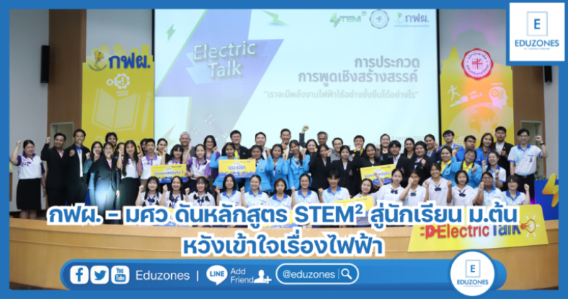 EZ Webmaster April 4, 2024 กฟผ. – มศว ดันหลักสูตร STEM² สู่นักเรียน ม.ต้น หวังเข้าใจเรื่องไฟฟ้า EZ Webmaster April 4, 2024 การไฟฟ้าฝ่ายผลิตแห่งประเทศไทย (กฟผ.) ร่วมกับ คณะวิทยาศาสตร์ มหาวิทยาลัยศรีนครินทรวิโรฒ (มศว) ผลักดันหลักสูตรสะเต็มกำลังสอง (STEM²) “ถ้าพรุ่งนี้…ไม่มีไฟฟ้า” แก่นักเรียนชั้น ม.ต้น ในโรงเรียนหลายร้อยแห่ง หวังให้เด็กรุ่นใหม่ เข้าใจสถานการณ์ปัญหาพลังงานไฟฟ้าของประเทศไทย โดยเมื่อวันที่ 3 เมษายนที่ผ่านมา การไฟฟ้าฝ่ายผลิตแห่งประเทศไทย (กฟผ.) ร่วมกับศูนย์วิทยาศาสตรศึกษา คณะวิทยาศาสตร์ มหาวิทยาลัยศรีนครินทรวิโรฒ (มศว) จัดการประกวดผลงานนักเรียน การพูดเชิงสร้างสรรค์ ElectricTalk ในหัวข้อ “เราจะมีพลังงานไฟฟ้าใช้อย่างยั่งยืนได้อย่างไร” ซึ่งกิจกรรมพูดเชิงสร้างสรรค์เป็นส่วนหนึ่งของกิจกรรมในหลักสูตรสะเต็มกำลังสอง ถ้าพรุ่งนี้…ไม่มีไฟฟ้า มีนักเรียนส่งผลงานทั้งหมด 18 ผลงาน… Continue Reading