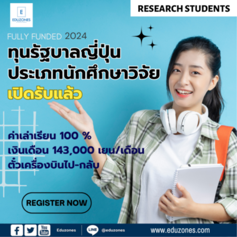 tui sakrapee April 4, 2024 เปิดแล้ว ! ทุนรัฐบาลญี่ปุ่น ประเภทนักศึกษาวิจัย เต็มจำนวนให้ชาวไทยไปศึกษาต่อในระดับป.โทหรือป.เอกที่ประเทศญี่ปุ่น tui sakrapee April 4, 2024 #ทุนรัฐบาลญี่ปุ่น #ประเภทนักศึกษาวิจัย (Research Students) ประจำปีการศึกษา 2568 เปิดรับสมัครแล้ว กระทรวงศึกษาธิการฯ ประเทศญี่ปุ่น ประกาศมอบทุนการศึกษาเต็มจำนวน (ค่าเรียน,ค่าครองชีพและตั๋วเครื่องบิน) ให้แก่ชาวไทย เพื่อไปศึกษาต่อในระดับปริญญาโทหรือปริญญาเอกที่ประเทศญี่ปุ่น คุณสมบัติผู้สมัคร • สัญชาติไทย • อายุไม่เกิน 35 ปี ( ณ วันที่ 1 เมษายน พ.ศ. 2568) • จบการศึกษาระดับปริญญาตรีหรือปริญญาโทแล้ว หรือกำลังศึกษาอยู่ชั้นปีสุดท้ายและคาดว่าจะจบการศึกษาภายในเดือนสิงหาคม พ.ศ. 2568… Continue Reading