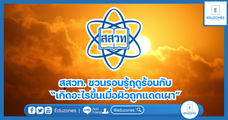 EZ Webmaster April 25, 2024 สสวท. ชวนรอบรู้ฤดูร้อนกับ “เกิดอะไรขึ้นเมื่อผิวถูกแดดเผา” EZ Webmaster April 25, 2024 สถาบันส่งเสริมการสอนวิทยาศาสตร์และเทคโนโลยี (สสวท.) พารอบรู้ฤดูร้อนกับบทความ “เกิดอะไรขึ้นเมื่อผิวถูกแดดเผา” ทำความรู้จักกับรังสีอัลตร้าไวโอเล็ต (Ultraviolet หรือ UV) ของแสงแดดที่ทำลายดีเอ็นเอบนเซลล์ผิวชั้นนอก โดยดวงอาทิตย์ปล่อยรังสียูวี 3 ชนิด ได้แก่ UVA UVB และ UVC ผลกระทบของแสงแดด การดูแลผิวที่ถูกแดดเผา และการบรรเทาอาการแสบร้อนจากแดดเผา น้อง ๆ เยาวชนและผู้สนใจคลิกเพิ่มอุณหภูมิความรู้กันได้ที่ คลังความรู้ SciMath สสวท. https://www.scimath.org/article?filter=รังสียูวี Continue Reading