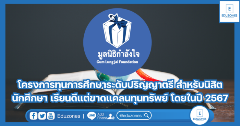 EZ Webmaster April 25, 2024 โครงการทุนการศึกษาระดับปริญญาตรี สำหรับนิสิต นักศึกษา ที่เรียนดีแต่ขาดแคลนทุนทรัพย์ โดยในปี 2567 EZ Webmaster April 25, 2024 มูลนิธิกำลังใจมีโครงการทุนการศึกษาระดับปริญญาตรี สำหรับนิสิต นักศึกษา ที่เรียนดีแต่ขาดแคลนทุนทรัพย์ โดยในปี 2567 นี้ ทางมูลนิธิฯ เปิดรับสมัครนักศึกษาทุน จำนวน 30 ทุน 1. โครงการกำลังใจสร้างครูของชาติ 10 ทุน (ทุนละ 30,000 บาท/ปี) 2. โครงการคุณหมอของกำลังใจ 2 ทุน (ทุนละ 50,000 บาท/ปี) 3. โครงการ Gumlungjai Scholars 8 ทุน (ทุนละ 40,000 บาท/ปี)… Continue Reading