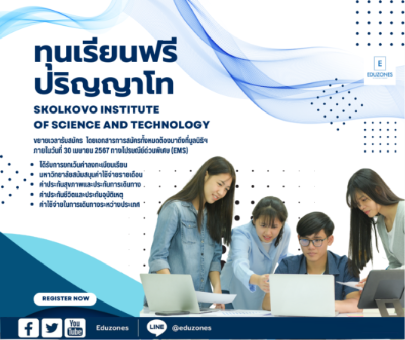 tui sakrapee April 24, 2024 ขยายเวลารับทุนเรียนต่อป.โท ณ สถาบันวิทยาศาสตร์และเทคโนโลยีสโกลโกโว สหพันธรัฐรัสเซีย tui sakrapee April 24, 2024 ประกาศขยายเวลารับสมัครคัดเลือกบุคคลเพื่อรับทุนการศึกษาไปศึกษาวิชา ณ สถาบันวิทยาศาสตร์และเทคโนโลยีสโกลโกโว (Skolkovo Institute of Science and Technology: Skoltech) สหพันธรัฐรัสเซีย ประจำปีการศึกษา 2567 (ค.ศ. 2024) หลักสูตรภาษาอังกฤษ ตามที่มูลนิธิเทคโนโลยีสารสนเทศตามพระราชดำริสมเด็จพระเทพรัตนราชสุดา ฯ สยามบรมราชกุมารีได้มีประกาศลงวันที่ 25 ธันวาคม 2566 เรื่อง รับสมัครคัดเลือกบุคคลเพื่อรับทุนการศึกษาไปศึกษาวิชา ณ สถาบันวิทยาศาสตร์และเทคโนโลยีสโกลโกโว (Skolkovo Institute of Science and Technology:… Continue Reading