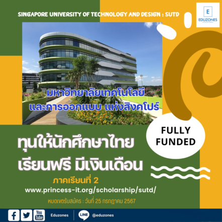 tui sakrapee April 22, 2024 ม.เทคโนโลยีและการออกแบบแห่งสิงคโปร์ ให้ทุนคนไทยไปศึกษาระดับปริญญาเอก ในสาขาวิศวกรรมศาสตร์ หรือวิทยาศาสตร์และเทคโนโลยี tui sakrapee April 22, 2024 ประกาศ รับสมัครคัดเลือกบุคคลเพื่อรับทุนการศึกษาไปศึกษาวิชา ณ มหาวิทยาลัยเทคโนโลยีและการออกแบบ แห่งสิงคโปร์ (Singapore University of Technology and Design : SUTD) สาธารณรัฐสิงคโปร์ ประจำปีการศึกษา 2567 (ค.ศ. 2024) ภาคเรียนที่ 2 ระดับปริญญาเอก หลักสูตรภาษาอังกฤษ มหาวิทยาลัยเทคโนโลยีและการออกแบบแห่งสิงคโปร์ (Singapore University of Technology and Design: SUTD) สาธารณรัฐสิงคโปร์ ได้ทูลเกล้าฯ… Continue Reading