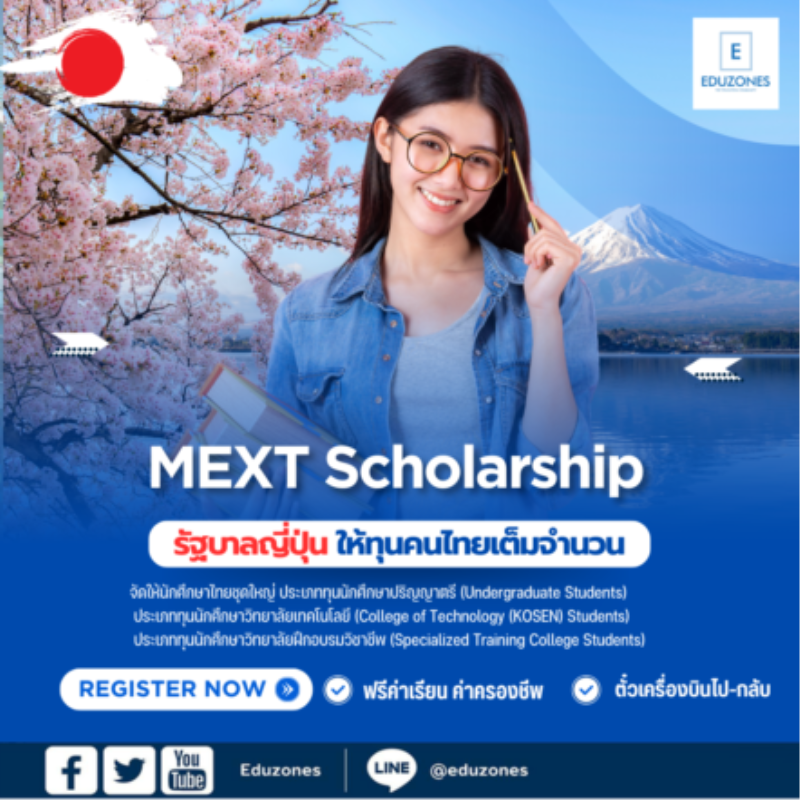 tui sakrapee April 20, 2024 รัฐบาลญี่ปุ่น เปิดมอบทุนเต็มจำนวน ค่าเรียน ค่าครองชีพ และตั๋วเครื่องบินไป-กลับ แก่ชาวไทยเพื่อไปศึกษาต่อในระดับวิทยาลัยและมหาวิทยาลัย tui sakrapee April 20, 2024 กระทรวงศึกษาธิการ วัฒนธรรม กีฬา วิทยาศาสตร์และเทคโนโลยีแห่งประเทศญี่ปุ่น (MEXT) ประกาศมอบทุนการศึกษาเต็มจำนวน (ค่าเรียน ค่าครองชีพ และตั๋วเครื่องบินไป-กลับ) แก่ชาวไทยเพื่อไปศึกษาต่อในระดับวิทยาลัยและมหาวิทยาลัย ผู้ที่สนใจสามารถศึกษารายละเอียดได้ที่ URL ด้านล่างนี้ ประเภททุนนักศึกษาปริญญาตรี (Undergraduate Students) URL : https://www.th.emb-japan.go.jp/itpr_th/undergraduate.html สำหรับประเภททุนนักศึกษาวิทยาลัยเทคโนโลยี (College of Technology (KOSEN) Students) และ ประเภททุนนักศึกษาวิทยาลัยฝึกอบรมวิชาชีพ (Specialized Training College Students) สามารถศึกษารายละเอียดได้ที่เว็บไซต์… Continue Reading