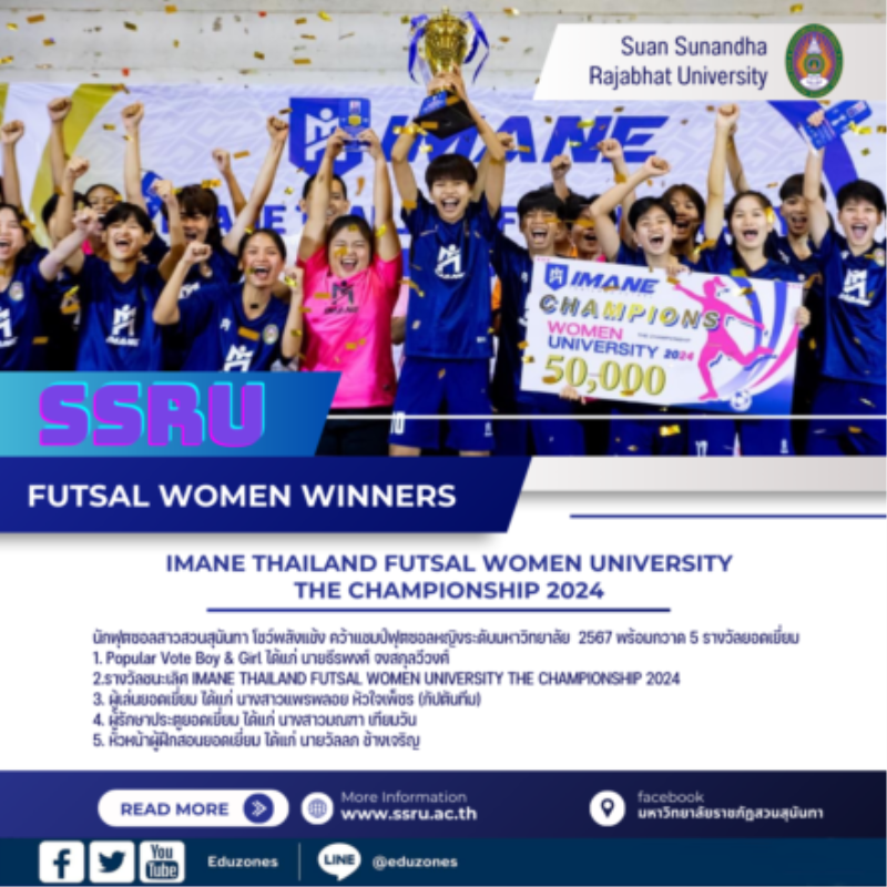 tui sakrapee April 18, 2024 สวนสุนันทา คว้าแชมป์ฟุตซอลทีมหญิง IMANE THAILAND พร้อมกวาด 5 รางวัลยอดเยี่ยม tui sakrapee April 18, 2024 สวนสุนันทา คว้าแชมป์ ฟุตซอลทีมหญิง IMANE THAILAND FUTSAL WOMEN UNIVERSITY THE CHAMPIONSHIP 2024 โค่นแชมป์เก่า 3 สมัย – พร้อมกวาด 5 รางวัล การแข่งขันกีฬาฟุตซอลทีมหญิง รายการ IMANE THAILAND FUTSAL FRESHY&WOMEN UNIVERSITY THE CHAMPIONSHIP 2024 ในรอบ 8 ทีมสุดท้าย สวนสุนันทา… Continue Reading