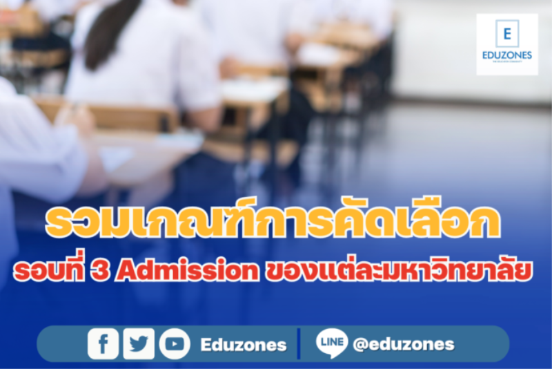 EZ Webmaster April 9, 2024 รวมเกณฑ์การคัดเลือก /คะแนนที่ใช้/ จำนวนรับใน #TCAS67 รอบที่ 3 #Admission ของแต่ละมหาวิทยาลัย EZ Webmaster April 9, 2024 สวัสดีน้องๆ #Dek67 ทุกคนนะครับ อย่างที่รู้กันว่าในช่วงนี้การสมัครสอบรอบที่ 3 Admission ใกล้เข้ามาแล้ว น้องๆหลายคนก็คงมีสาขา/คณะ ในใจกันอยู่บ้างแล้ว วันนี้ EDUZONES ได้รวบรวมข้อมูลและเกณฑ์คะแนนคัดเลือกของคณะต่างๆในแต่มหาวิทยาลัยมาฝากน้องๆกันแล้ว งั้นเรามาดูกันเลยดีกว่าครับว่าคะแนนของเราจะสอดคล้องกับคณะหรือสาขาที่เราสนใจกันอยู่มั้ยนะ 1.จุฬาลงกรณ์มหาวิทยาลัย จำนวนรับ – 3,035 คน ดูเกณฑ์การคัดเลือกคณะอื่นๆของจุฬาลงกรณ์มหาวิทยาลัย คลิกที่นี่ 2.มหาวิทยาลัยธรรมศาสตร์ จำนวนรับ – 5,267 คน ดูเกณฑ์การคัดเลือกคณะอื่นๆของมหาวิทยาลัยธรรมศาสตร์ คลิกที่นี่ 3.มหาวิทยาลัยเกษตรศาสตร์ จำนวนรับ – 7,061 คน ประกอบด้วย วิทยาเขตบางเขน… Continue Reading