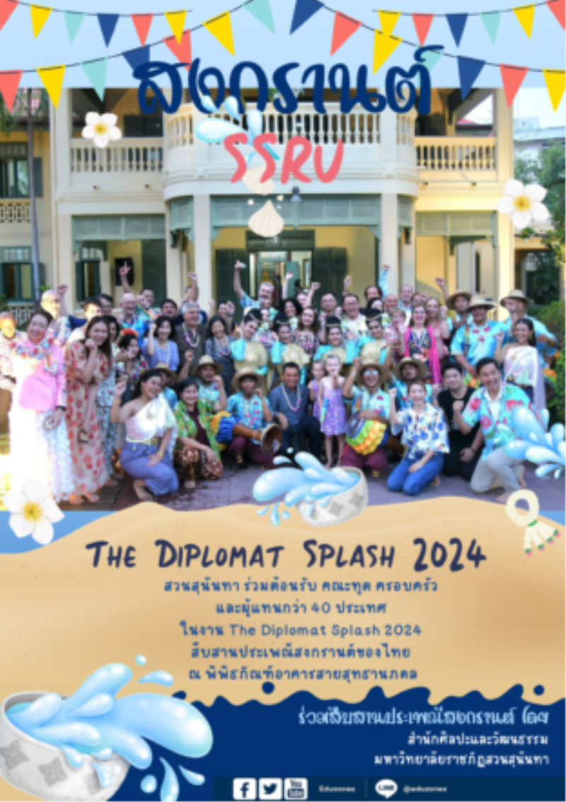 tui sakrapee April 9, 2024 คณะทูต ครอบครัว และผู้แทนกว่า 40 ประเทศ ร่วมงาน The Diplomat Splash 2024 สืบสานประเพณีสงกรานต์ ณ พิพิธภัณฑ์อาคารสายสุทธานภดล tui sakrapee April 9, 2024 สวนสุนันทา ร่วมต้อนรับ คณะทูต ครอบครัว และผู้แทนกว่า 40 ประเทศ ในงาน The Diplomat Splash 2024 สืบสานประเพณีสงกรานต์ของไทย ณ พิพิธภัณฑ์อาคารสายสุทธานภดล วันที่ 4 เมษายน 2567 มหาวิทยาลัยราชภัฏสวนสุนันทา โดยสำนักศิลปะและวัฒนธรรมร่วมจัดงาน The Diplomat Splash 2024 แก่คณะทูตและครอบครัว เพื่อเป็นการเผยแพร่ประเพณีสงกรานต์ของไทย โดยได้รับเกียรติจาก รองศาสตราจารย์ ดร.สุมาลี เทียนทองดี ผู้ช่วยอธิการบดีฝ่ายวิชาการ… Continue Reading