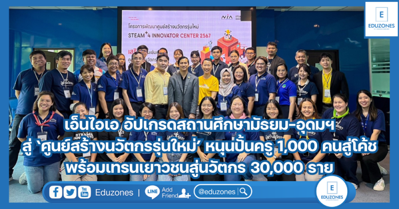 EZ Webmaster May 16, 2024 EZ Webmaster May 16, 2024 เอ็นไอเอ อัปเกรดสถานศึกษามัธยม-อุดมฯ สู่ ‘ศูนย์สร้างนวัตกรรุ่นใหม่’ หนุนปั้นครู 1,000 คนสู่โค้ช พร้อมเทรนเยาวชนสู่นวัตกร 30,000 ราย ใช้ “STEAM4INNOVATOR” สู่กระบวนการสร้างความรู้ใหม่ในคลาสเรียน สำนักงานนวัตกรรมแห่งชาติ (องค์การมหาชน) หรือ NIA กระทรวงการอุดมศึกษา วิทยาศาสตร์ วิจัย และนวัตกรรม (อว.) หนุนปั้นนวัตกรระดับเยาวชนจากกลุ่มสถานศึกษาต่อเนื่องเป็นปีที่ 3 ผ่าน “ศูนย์สร้างนวัตกรรุ่น STEAM4INNOVATOR ใหม่ STEAM4INNOVATOR CENTER” ซึ่งได้ร่วมมือกับเครือข่ายสถานศึกษาทั้งระดับมัธยมศึกษาและอุดมศึกษาส่งเสริมการใช้กระบวนการสร้างนวัตกรรม STEAM4INNOVATOR ในห้องเรียน พัฒนาครูและอาจารย์ให้เป็น “ผู้สร้างนวัตกร” และขยายผลห้องเรียนนวัตกรรมให้กระจายไปยังสถานศึกษาเครือข่ายทั่วประเทศ เพื่อเป็นพื้นที่ให้กับเยาวชนในการพัฒนาทักษะนวัตกรและผลงานนวัตกรรม มุ่งสู่การเป็นผู้ประกอบการธุรกิจนวัตกรรมในอนาคต โดยในปีนี้มุ่งเน้น 2 เป้าหมายหลัก ได้แก่ การสร้างความเข้มแข็งของศูนย์สร้างนวัตกรรุ่นใหม่ผ่านแกนหลัก 4C ด้วยองค์ประกอบ ABC (A-Academic การทำงานร่วมกันเชิงวิชาการ B-Badge การพัฒนาเกณฑ์ประเมินศักยภาพศูนย์ และ C-Culture การสร้างวัฒนธรรมการเรียนรู้แบบนวัตกร) และการขยายเครือข่ายโค้ชผู้สร้างนวัตกร 1,000 คน ผลักดันให้นักเรียน/นักศึกษาทั่วประเทศสามารถเข้าถึงได้กว่า 30,000 คน ดร. กริชผกา บุญเฟื่อง ผู้อำนวยการสำนักงานนวัตกรรมแห่งชาติ (องค์การมหาชน) หรือ NIA กล่าวว่า NIA เล็งเห็นความสำคัญในการพัฒนาศักยภาพด้านนวัตกรรมในกลุ่มเยาวชนคนรุ่นใหม่ จึงได้ดำเนินโครงการพัฒนา “ศูนย์สร้างนวัตกรรุ่นใหม่ STEAM4INNOVATOR CENTER” ร่วมกับ 18 สถานศึกษา เพื่อสร้างห้องเรียนนวัตกรรมผ่านการใช้องค์ความรู้ STEAM4INNOVATOR ที่กระตุ้นการสร้างสรรค์นวัตกรรมบนฐาน STEAM อันได้แก่ วิทยาศาสตร์ (Science) เทคโนโลยี (Technology) วิศวกรรมศาสตร์ (Engineering) ศิลปศาสตร์ (Arts) และคณิตศาสตร์ (Mathematics) พร้อมแนวคิดทางด้านธุรกิจที่เป็นระบบ โดยปีนี้มุ่งเน้น 2 เป้าหมายหลัก คือ 1. การสร้างความเข้มแข็งของศูนย์สร้างนวัตกรรุ่นใหม่ บนแกนหลัก 4C ได้แก่ Content ติดเครื่องมือเนื้อหาให้ครูและอาจารย์สามารถใช้กระบวนการและเครื่องมือจาก STEAM4INNOVATOR ในการจัดการเรียนการสอนได้อย่างเข้มข้น Coaching พัฒนาครูและอาจารย์ให้สามารถเป็นโค้ชนวัตกรให้กับนักเรียนได้อย่างเชี่ยวชาญ Connection ส่งเสริมให้คุณครูสามารถหาเครือข่ายผู้เชี่ยวชาญในการสนับสนุนการเรียนรู้และพัฒนาผลงานนวัตกรรมของนักเรียน และ Cluster สนับสนุนให้โรงเรียนจัดพื้นที่สำหรับการแลกเปลี่ยนประสบการณ์ความคิดและแรงบันดาลใจของนวัตกรเยาวชน พร้อมทั้งเสร