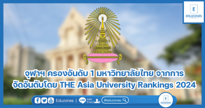 EZ Webmaster May 2, 2024 จุฬาฯ ครองอันดับ 1 มหาวิทยาลัยไทย จากการจัดอันดับโดย THE Asia University Rankings 2024 EZ Webmaster May 2, 2024 จุฬาลงกรณ์มหาวิทยาลัยผงาดเป็นมหาวิทยาลัยอันดับ 1 ของไทย และ Top 200 ของเอเชีย จากการจัดอันดับสถาบันอุดมศึกษาที่ดีที่สุดในเอเชีย THE Asia University Rankings 2024 ซึ่งประกาศผลอย่างเป็นทางการเมื่อวันที่ 1 พฤษภาคม 2567 โดยอันดับของจุฬาฯ ขยับขึ้นจากเมื่อปีที่แล้วถึง 102 อันดับ จากสถาบันอุดมศึกษาในเอเชียที่ได้รับการจัดอันดับจำนวนทั้งสิ้น 739 แห่ง (ไม่นับรวมสถาบันที่ไม่ผ่านเกณฑ์ขั้นต่ำ หรือ Reporter) ซึ่งมากกว่าปีที่แล้วที่มีสถาบันอุดมศึกษาจำนวน 669 แห่ง โดยมีมหาวิทยาลัยไทยได้รับการจัดอันดับจำนวน 19… Continue Reading