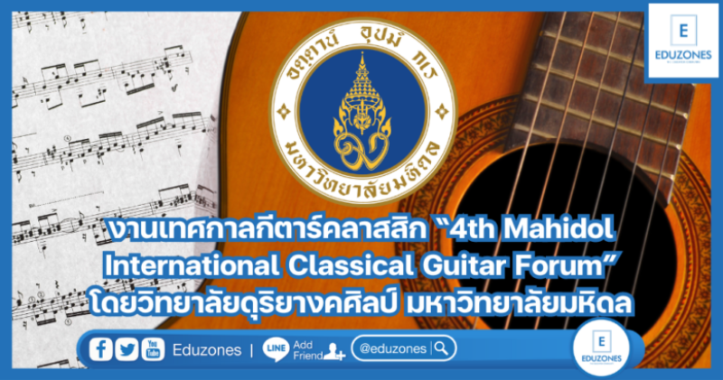 EZ Webmaster May 2, 2024 งานเทศกาลกีตาร์คลาสสิก “4th Mahidol International Classical Guitar Forum” โดยวิทยาลัยดุริยางคศิลป์ มหาวิทยาลัยมหิดล EZ Webmaster May 2, 2024 ประชาสัมพันธ์งานเทศกาลกีตาร์คลาสสิก โดยวิทยาลัยดุริยางคศิลป์ มหาวิทยาลัยมหิดล ที่จะจัดขึ้นระหว่างวันที่ 23 – 25 สิงหาคม 2567 ซึ่งครั้งนี้เป็นครั้งที่ 4 ในชื่อ “4th Mahidol International Classical Guitar Forum” กิจกรรมหลักประกอบด้วย (1) การแข่งขันกีตาร์คลาสสิก ปีนี้มีทั้งการแข่งขันประเภทเดี่ยวโดยแบ่งรุ่นตามอายุ และการแข่งขันประเภทรวมวง มูลค่ารางวัลรวมทั้งหมดกว่า 255,000 บาท โดยรางวัลใหญ่ที่สุดของการแข่งขันคือกีตาร์คลาสสิก Fonzo รุ่น EJ-15 (Made in… Continue Reading