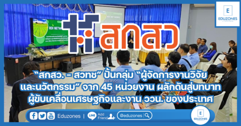 EZ Webmaster May 2, 2024 “สกสว. – สวทช” ปั้นกลุ่ม “ผู้จัดการงานวิจัยและนวัตกรรม” จาก 45 หน่วยงาน ผลักดันสู่บทบาทผู้ขับเคลื่อนเศรษฐกิจและงาน ววน. ของประเทศ EZ Webmaster May 2, 2024 สำนักงานคณะกรรมการส่งเสริมวิทยาศาสตร์ วิจัยและนวัตกรรม (สกสว.) ร่วมกับ สถาบันพัฒนาบุคลากรแห่งอนาคต สำนักงานพัฒนาวิทยาศาสตร์และเทคโนโลยีแห่งชาติ (สวทช.) จัดกิจกรรมพัฒนาผู้จัดการงานวิจัย พัฒนาและนวัตกรรม หรือ RDI Manager เพื่อให้เกิดการแลกเปลี่ยนประสบการณ์ กลไกการทำงานระหว่างหน่วยงาน ให้สามารถเชื่อมโยงยกระดับการบริหารจัดการงานวิจัยและนวัตกรรมได้เหมาะสมกับบริบทของหน่วยงานในระบบ ววน. พร้อมสร้างความสัมพันธ์ระหว่างบุคลากร ความร่วมมือในการขยายผลการขับเคลื่อนผลงานวิจัยสู่การใช้ประโยชน์ร่วมกับหน่วยงานพันธมิตรทั้งภาครัฐและภาคเอกชน รวมทั้งการส่วนร่วมออกแบบแนวทางการขับเคลื่อนมาตรฐานวิชาชีพของ RDI Managers และกิจกรรมศึกษาดูงาน “แนวทางการบริหารงานวิจัยเชิงพื้นที่” บทบาทของกลไกชุมชนและภาคีเครือข่ายในการขับเคลื่อนงานเชิงระบบ (สังคม วัฒนธรรม เศรษฐกิจ และสิ่งแวดล้อม) โดยมีผู้เข้าร่วมกิจกรรมจากหลักสูตร RDI Manager ด้านชุมชนและพื้นที่ RDI Manager ด้านเศรษฐกิจ (รุ่นที่ 1 และรุ่นที่ 2) RDI Manager ด้านนโยบาย และนักบริหารระบบงานวิจัย พัฒนาและนวัตกรรมขององค์กร หรือ RDI Executive… Continue Reading