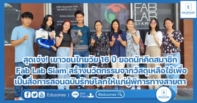 EZ Webmaster May 21, 2024 สุดเจ๋ง! เยาวชนไทยวัย 16 ปี ยอดนักคิดสมาชิก Fab Lab Siam สร้างนวัตกรรมจากวัสดุเหลือใช้เพื่อเป็นสื่อการสอนฉบับรักษ์โลกให้แก่ผู้พิการทางสายตา EZ Webmaster May 21, 2024 ปัจจุบันหลายคนคงคุ้นชินกับคำว่า “เทคโนโลยี” หรือ “นวัตกรรม” ในชีวิตประจำวันอยู่บ่อยครั้ง แต่หลายคนอาจยังไม่คุ้นเคยว่านวัตกรรมนอกจากจะช่วยเพิ่มประสิทธิภาพให้ธุรกิจและอุตสาหกรรมได้แล้ว นวัตกรรมยังสามารถส่งต่อสิ่งดีๆ เพื่อสังคมได้ โดยผ่านจินตนาการและพลังของคนรุ่นใหม่ที่เติบโตมาพร้อมสิ่งอำนวยความสะดวก มีความสามารถในการใช้เทคโนโลยีได้อย่างมีประสิทธิภาพและเรียนรู้ได้เร็ว ที่พร้อมลุกขึ้นมาจุดประกายพลังบวกเล็กๆ ผ่านการใช้นวัตกรรมมาสร้างสรรค์สิ่งประดิษฐ์เพื่อผู้ด้อยโอกาสในสังคม เปิดโลกที่มากกว่าการมองเห็นให้ผู้พิการทางสายตาได้สัมผัสกับประสบการณ์การเรียนรู้ใหม่ๆ ด้วยสื่อการเรียนการสอนฉบับรักษ์โลกที่สร้างขึ้นจากขวดพลาสติกเหลือใช้ ผสานกับนวัตกรรม 3D Printer และโซลูชันครบวงจรจาก Fab Lab Siam หรือ แล็บเปลี่ยนไอเดียให้เป็นจริง ที่ก่อตั้งโดย บริษัท อินแคมเทค จำกัด ผู้ให้บริการที่ปรึกษาการสร้าง Fab Lab และ STEM… Continue Reading
